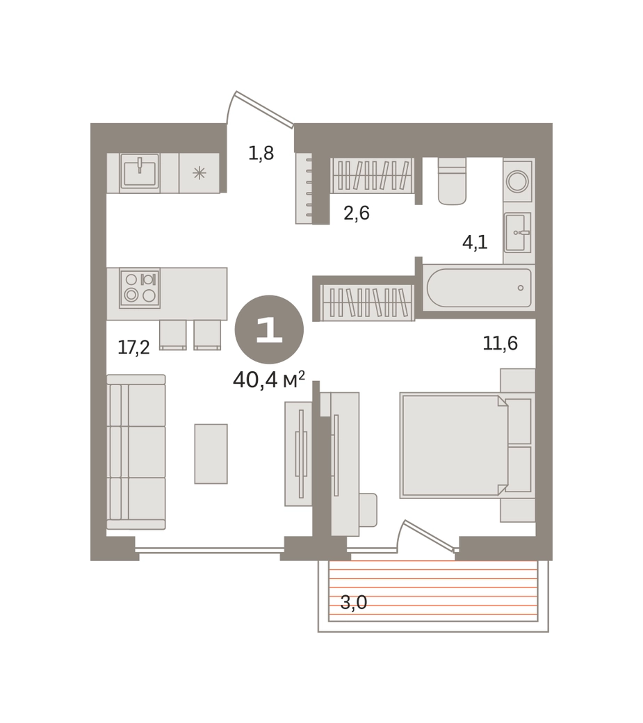 Продаётся с кладовой. Квартира с кухней-гостиной и одной спальней в «Первом квартале». Особенности планировки: предчистовая отделка, балкон. № квартиры в нашей базе: МТК06-Ж3.7.2.О застройщике