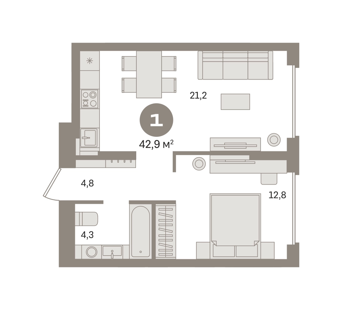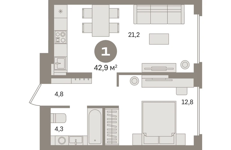 Квартира с кухней-гостиной и одной спальней в «Первом квартале». Особенности планировки: предчистовая отделка. № квартиры в нашей базе: МТК06-Ж1.13.2.О застройщике