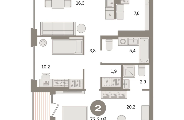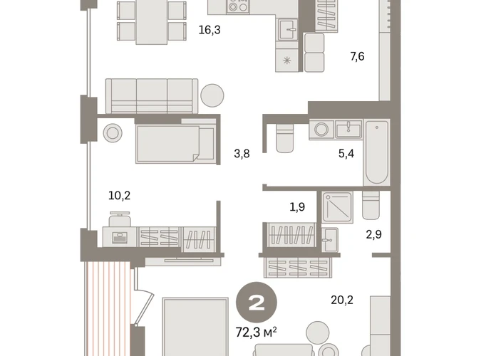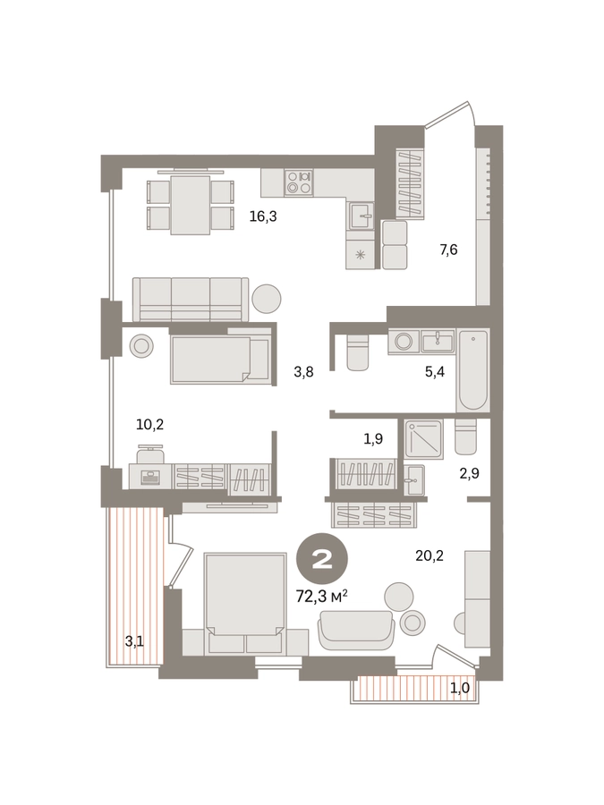 Квартира с кухней-гостиной и двумя спальнями в «Первом квартале». Особенности планировки: второй санузел, гардеробная, французский балкон, вид во двор, лоджия, предчистовая отделка, мастер-спальня. № квартиры в нашей базе: МТК07-Ж1.10.8.О застройщике