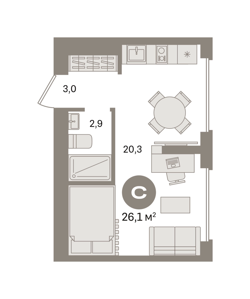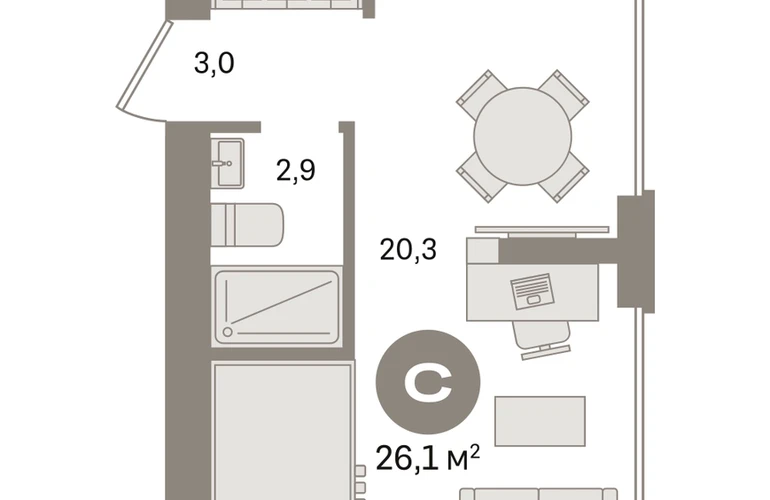 Студия в «Первом квартале». Особенности планировки: предчистовая отделка. № квартиры в нашей базе: МТК07-Ж1.2.4.О застройщике
