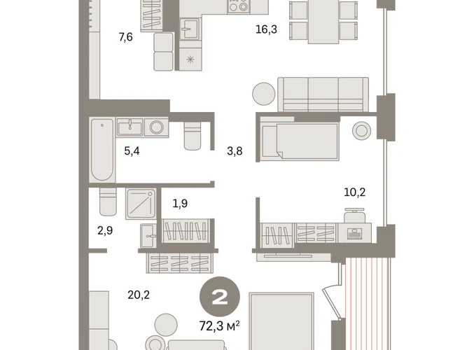 Квартира с кухней-гостиной и двумя спальнями в «Первом квартале». Особенности планировки: второй санузел, гардеробная, французский балкон, вид во двор, лоджия, предчистовая отделка, мастер-спальня. № квартиры в нашей базе: МТК07-Ж1.8.6.О застройщике