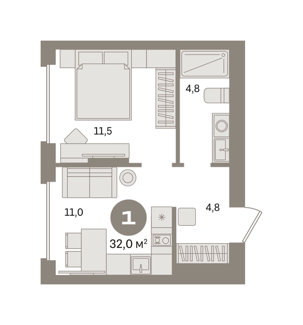 Квартира с кухней-гостиной и одной спальней в «Первом квартале». Особенности планировки: вид во двор, предчистовая отделка. № квартиры в нашей базе: МТК07-Ж1.7.9.О застройщике