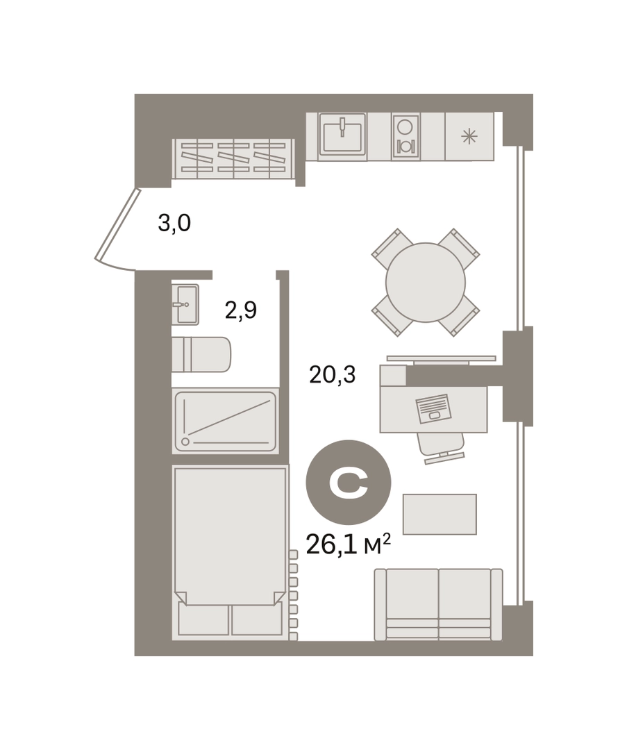 Студия в «Первом квартале». Особенности планировки: предчистовая отделка. № квартиры в нашей базе: МТК07-Ж1.4.4.О застройщике