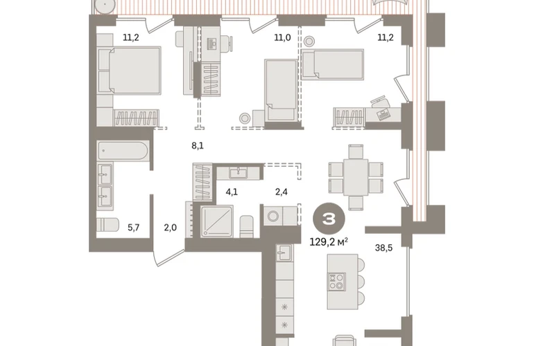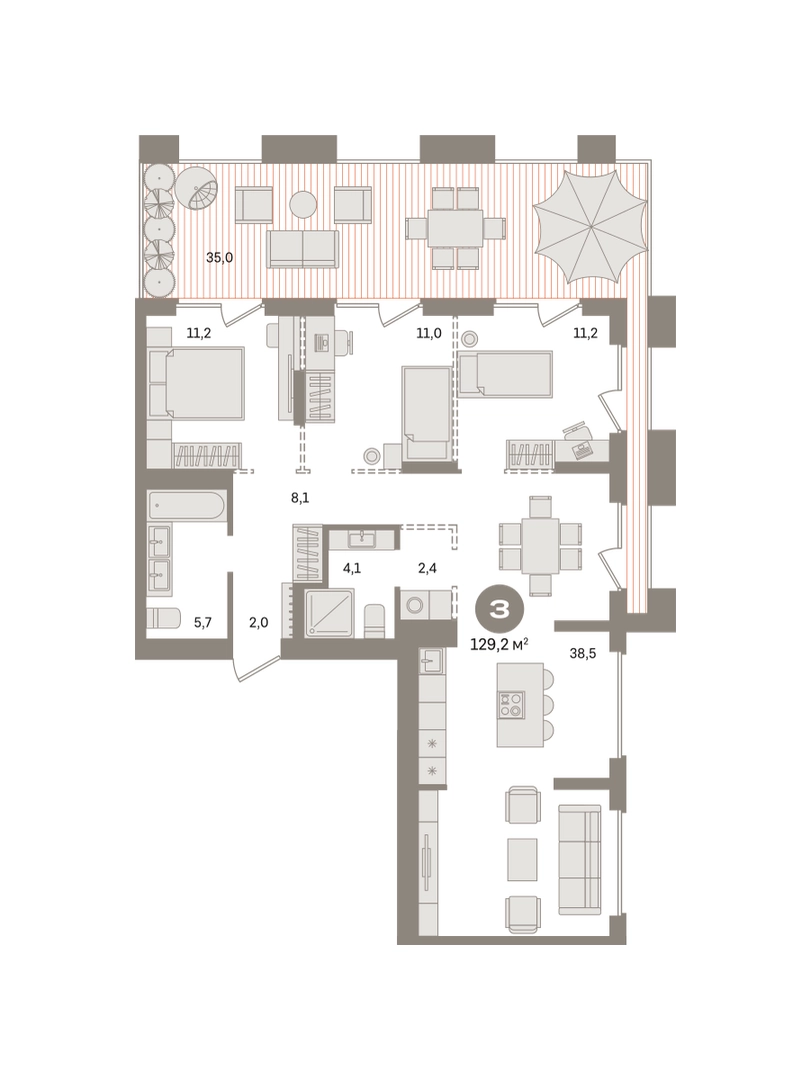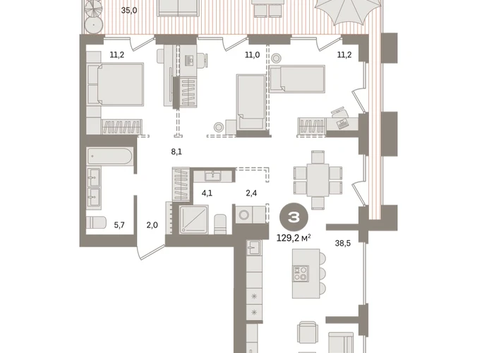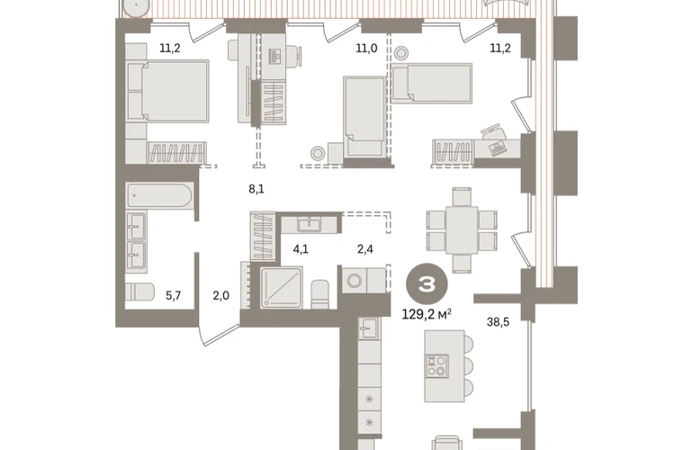 Продаётся с кладовой. Квартира с кухней-гостиной и тремя спальнями в «Первом квартале». Особенности планировки: второй санузел, без отделки, свободная планировка, терраса, постирочная. № квартиры в нашей базе: МТК07-Ж1.14.2.О застройщике
