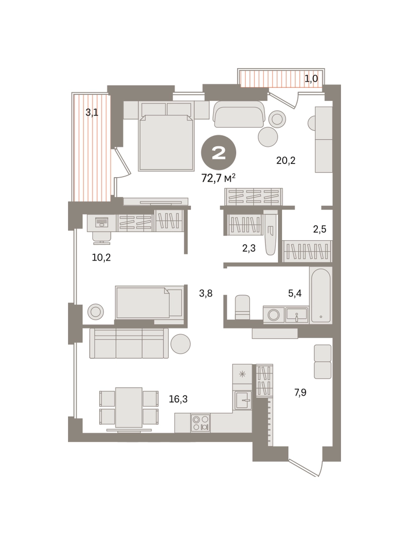 Квартира с кухней-гостиной и двумя спальнями в «Первом квартале». Особенности планировки: гардеробная, французский балкон, вид во двор, лоджия, предчистовая отделка. № квартиры в нашей базе: МТК07-Ж1.12.2.О застройщике