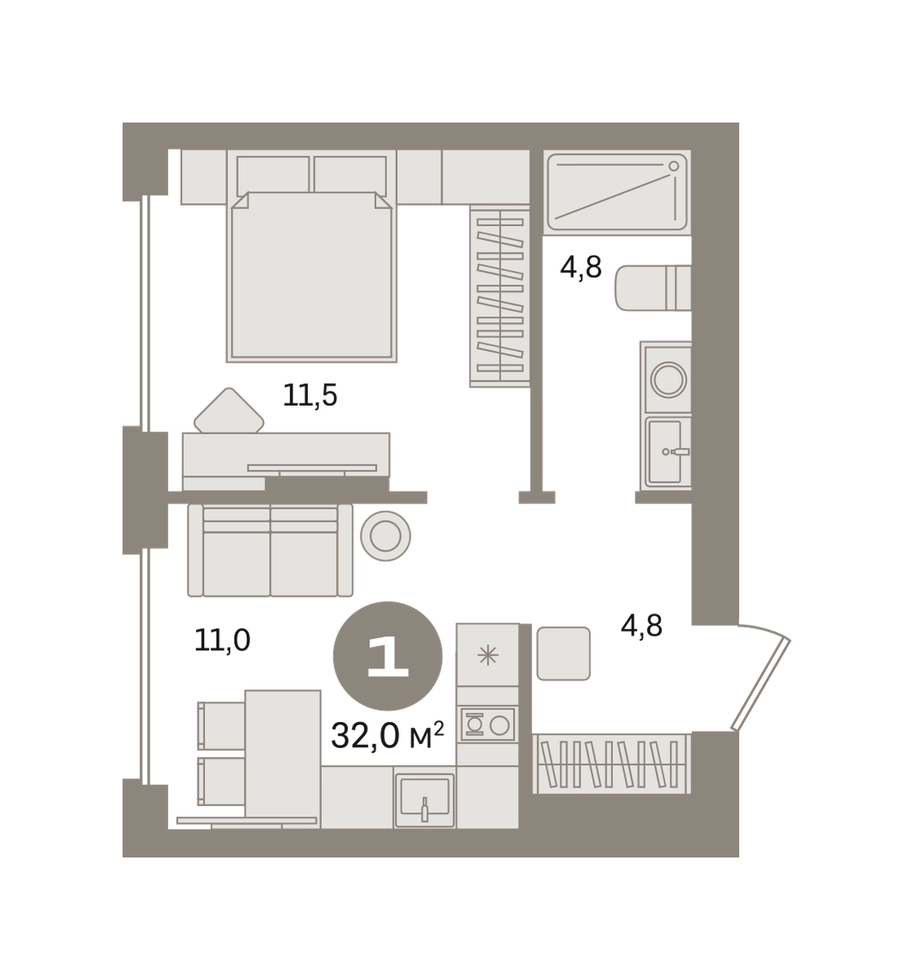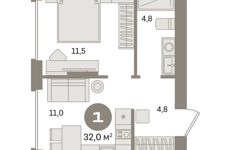 Квартира с кухней-гостиной и одной спальней в «Первом квартале». Особенности планировки: вид во двор, предчистовая отделка. № квартиры в нашей базе: МТК07-Ж1.5.9.О застройщике