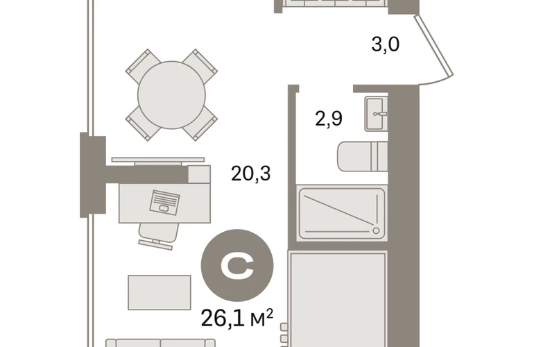 Студия в «Первом квартале». Особенности планировки: вид во двор, предчистовая отделка. № квартиры в нашей базе: МТК07-Ж1.10.1.О застройщике