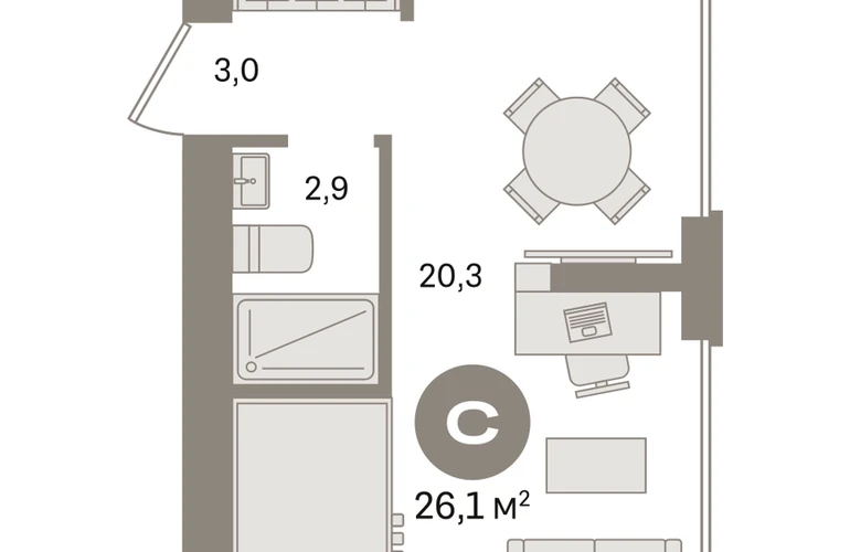 Студия в «Первом квартале». Особенности планировки: предчистовая отделка. № квартиры в нашей базе: МТК07-Ж1.5.4.О застройщике