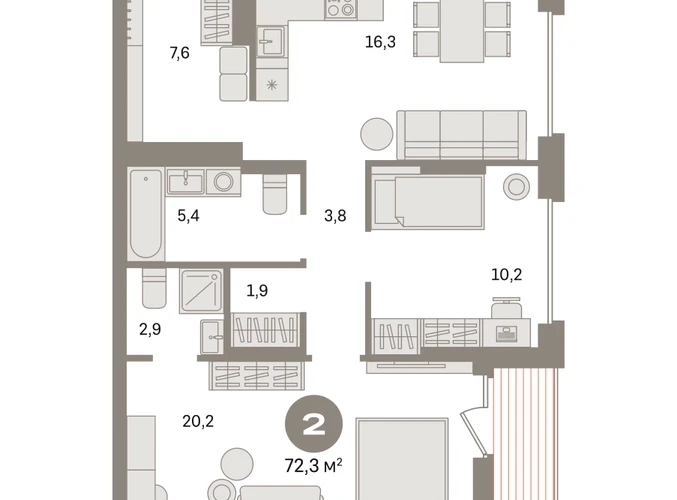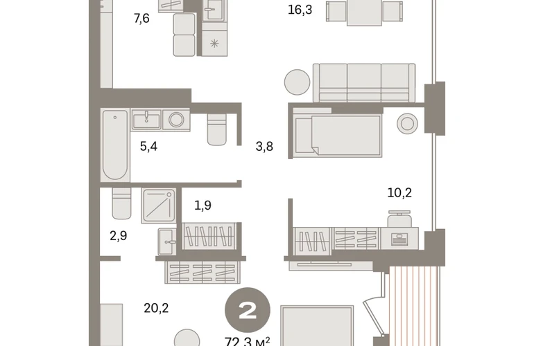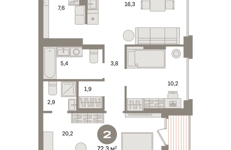 Квартира с кухней-гостиной и двумя спальнями в «Первом квартале». Особенности планировки: второй санузел, гардеробная, французский балкон, вид во двор, лоджия, предчистовая отделка, мастер-спальня. № квартиры в нашей базе: МТК07-Ж1.14.4.О застройщике