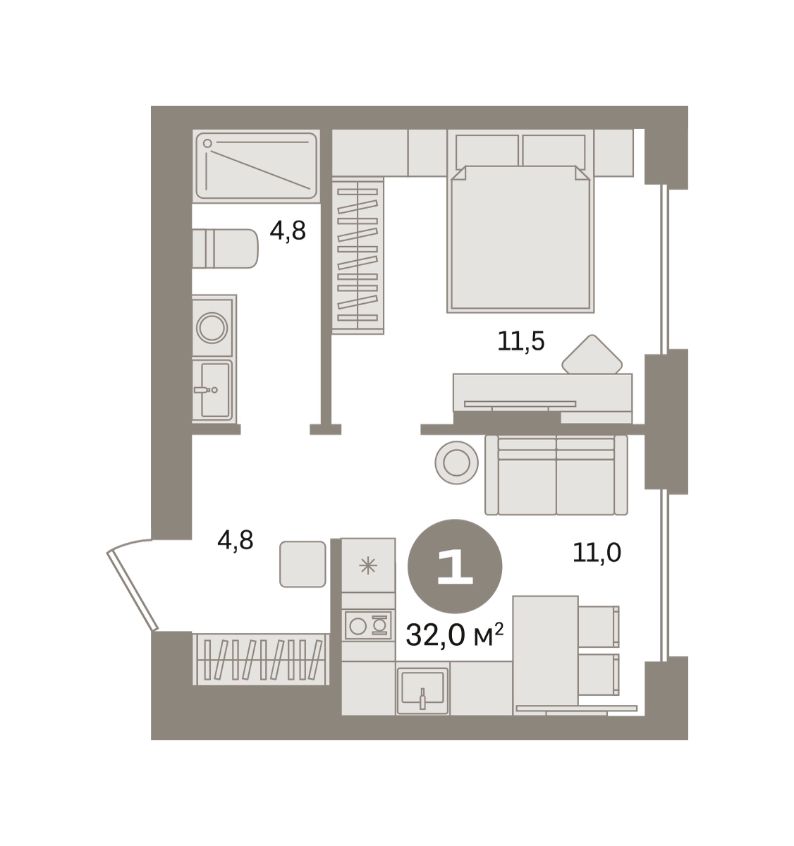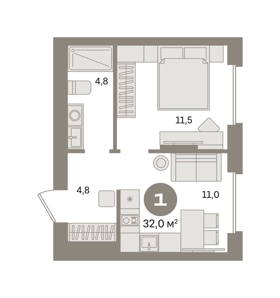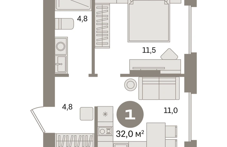 Квартира с кухней-гостиной и одной спальней в «Первом квартале». Особенности планировки: предчистовая отделка. № квартиры в нашей базе: МТК07-Ж1.15.3.О застройщике