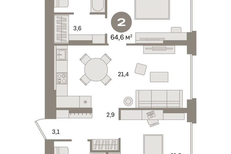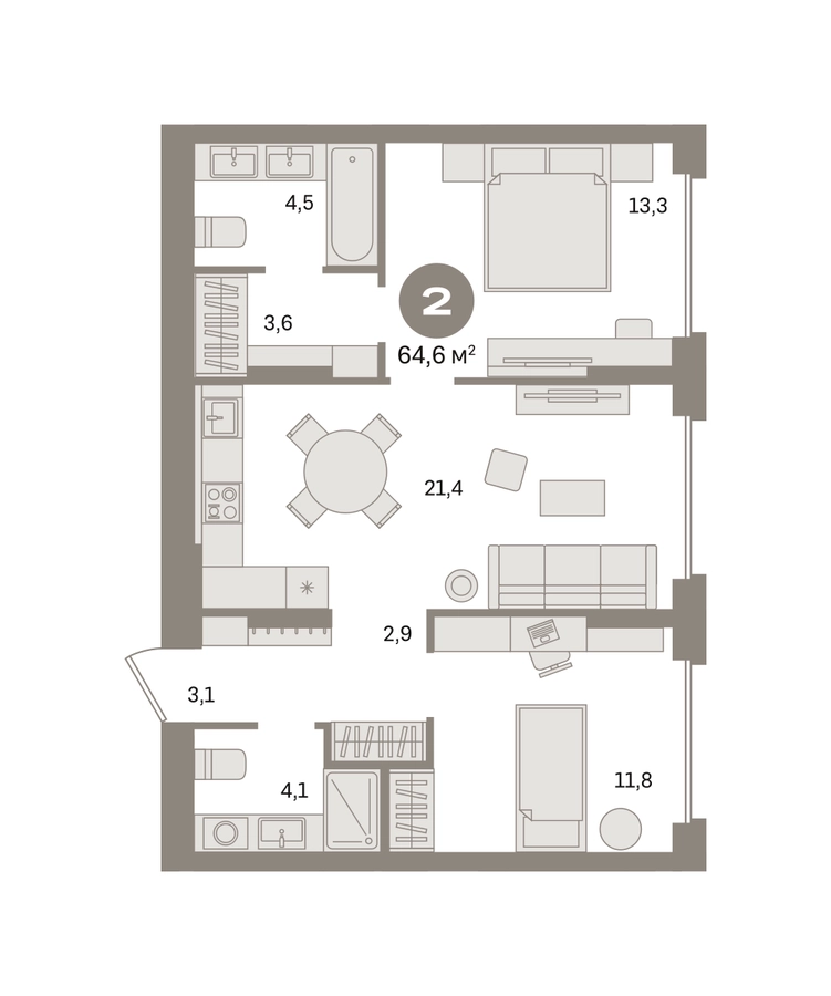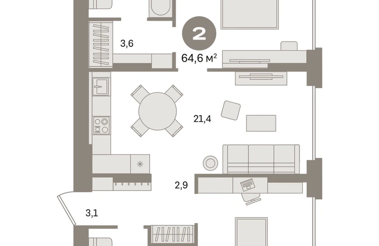 Квартира с кухней-гостиной и двумя спальнями в «Первом квартале». Особенности планировки: второй санузел, гардеробная, разнесённые спальни, предчистовая отделка, мастер-спальня. № квартиры в нашей базе: МТК02-Ж4.5.3.О застройщике