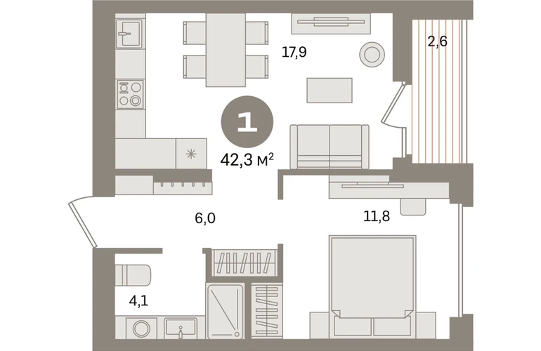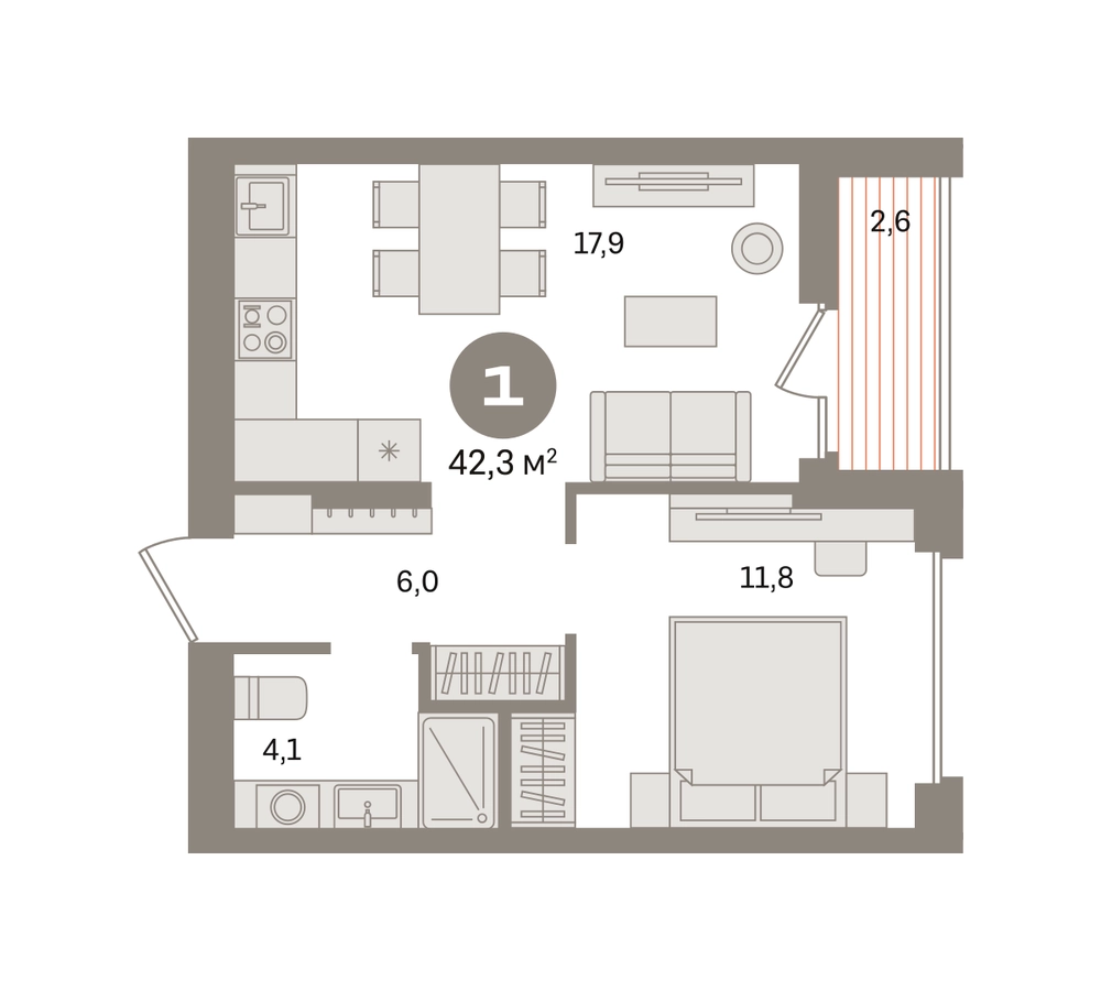 Квартира с кухней-гостиной и одной спальней в «Первом квартале». Особенности планировки: лоджия, предчистовая отделка. № квартиры в нашей базе: МТК02-Ж4.11.4.О застройщике