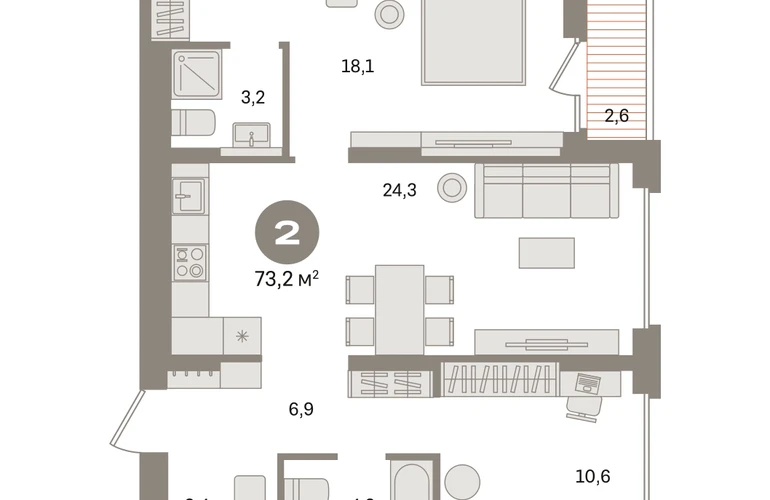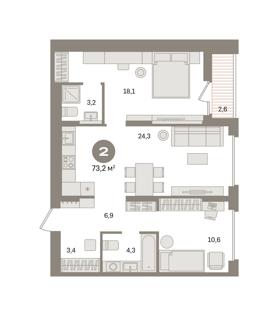 Квартира с кухней-гостиной и двумя спальнями в «Первом квартале». Особенности планировки: гардеробная, вид во двор, лоджия, разнесённые спальни, предчистовая отделка, мастер-спальня. № квартиры в нашей базе: МТК02-Ж1.3.6.О застройщике