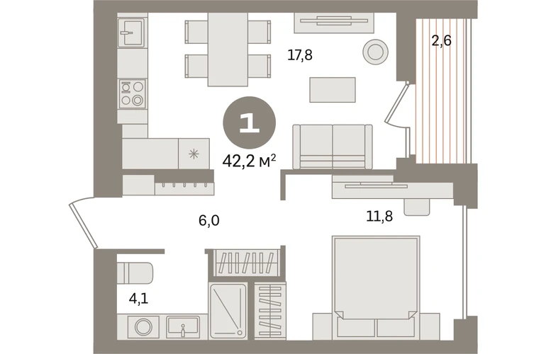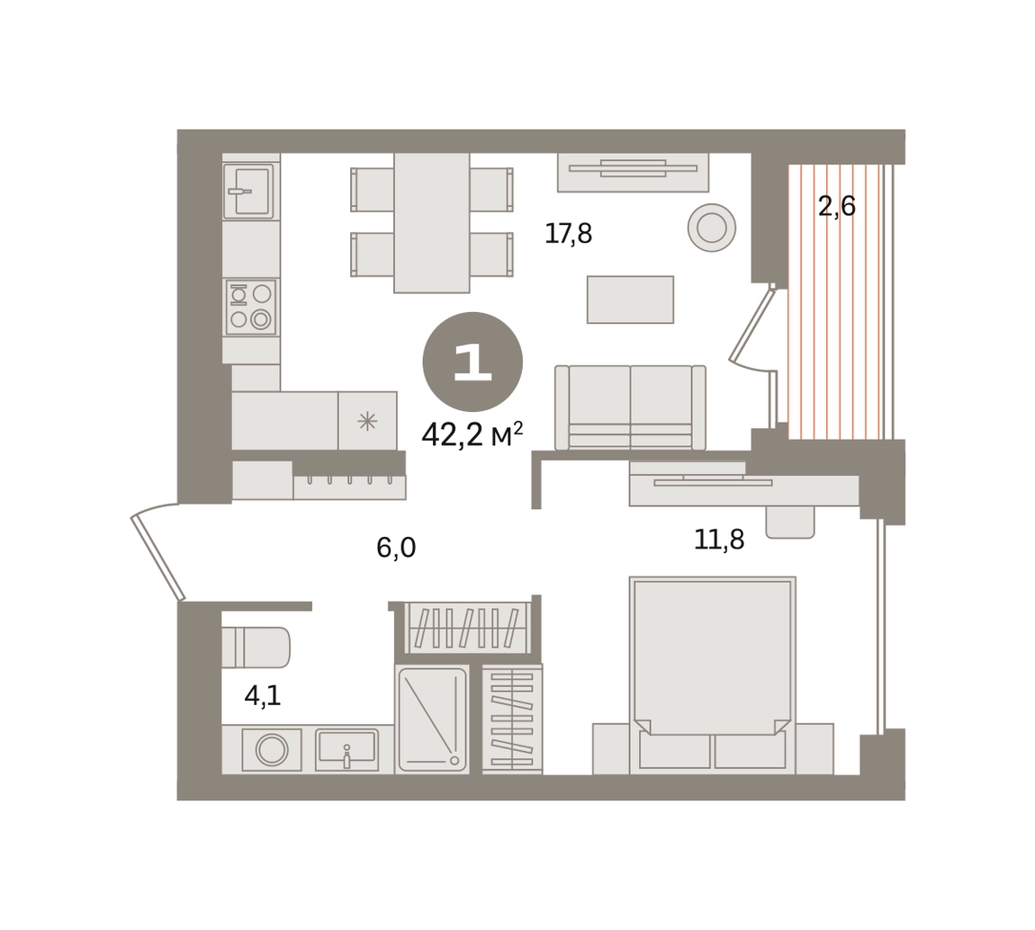 Квартира с кухней-гостиной и одной спальней в «Первом квартале». Особенности планировки: лоджия, предчистовая отделка. № квартиры в нашей базе: МТК02-Ж4.11.5.О застройщике