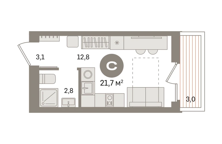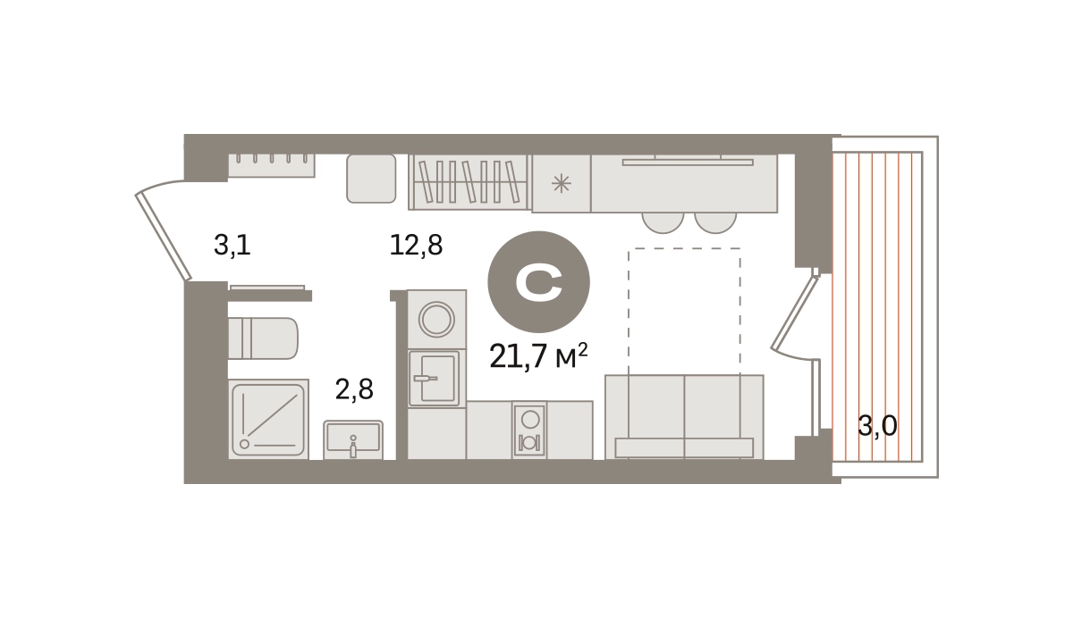 Студия в «Первом квартале». Особенности планировки: предчистовая отделка, балкон. № квартиры в нашей базе: МТК02-Ж5.3.5.О застройщике