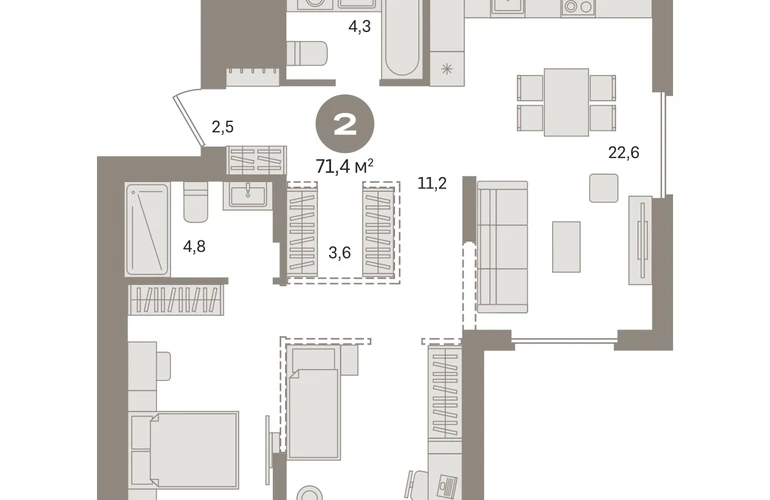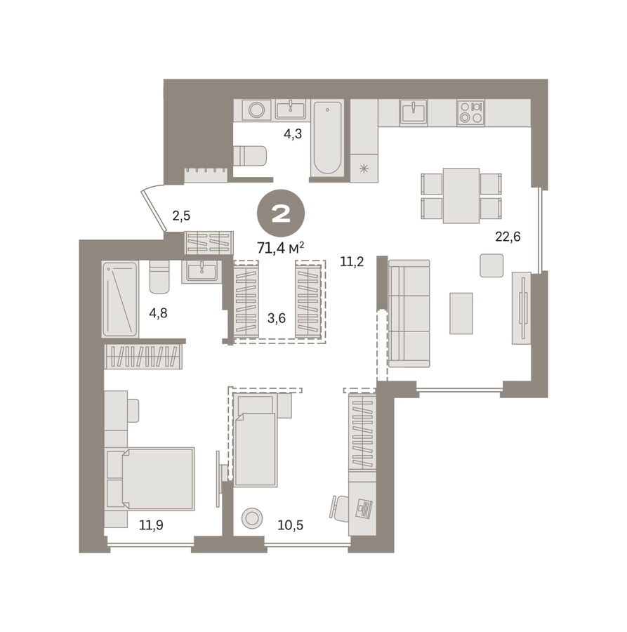 Продаётся с кладовой. Квартира с кухней-гостиной и двумя спальнями в «Первом квартале». Особенности планировки: второй санузел, гардеробная, без отделки, вид во двор, свободная планировка, мастер-спальня. № квартиры в нашей базе: МТК03-Ж1.17.1.О застройщике
