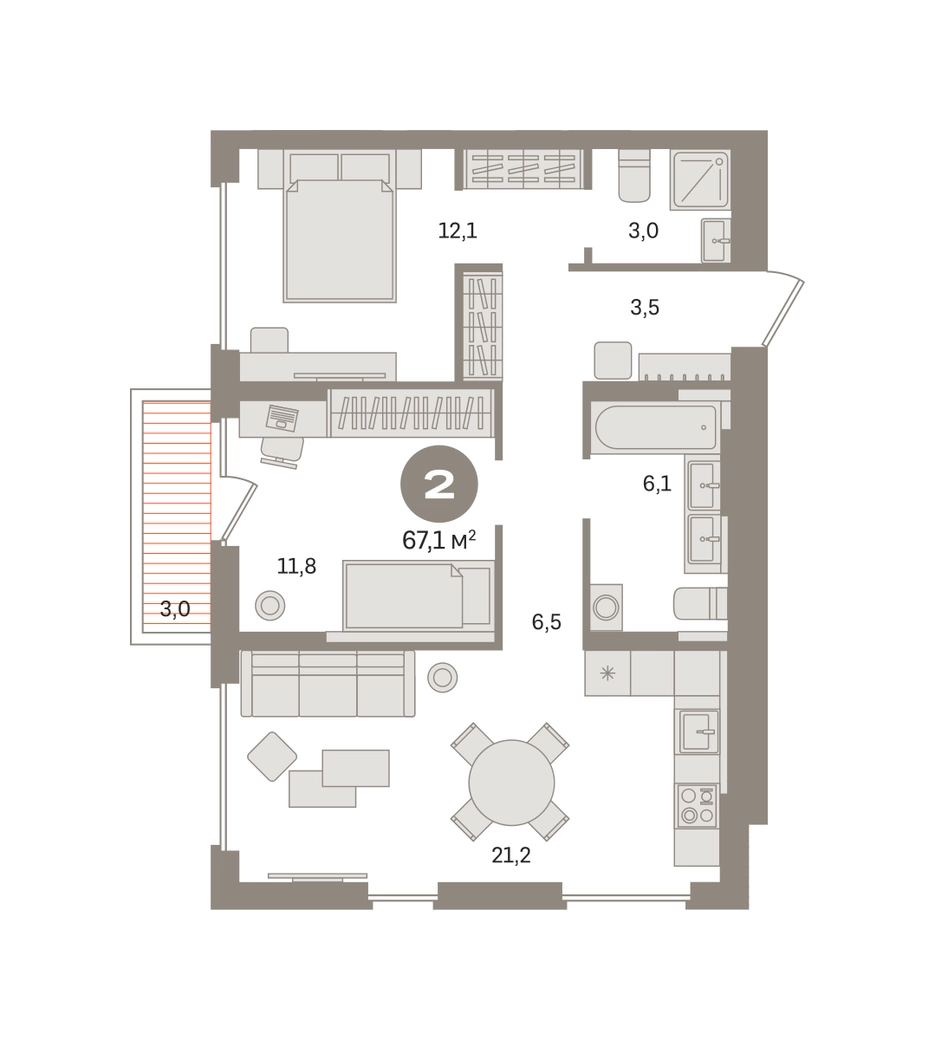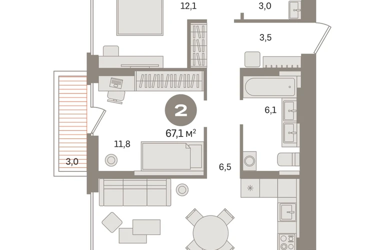 Квартира с кухней-гостиной и двумя спальнями в «Первом квартале». Особенности планировки: второй санузел, гардеробная, предчистовая отделка, мастер-спальня, балкон. № квартиры в нашей базе: МТК06-Ж4.5.2.О застройщике
