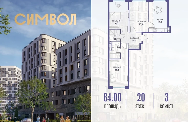 Продается 3-комнатная квартира от застройщика: общая площадь 84.00 м², жилая 51.70 м², кухня 15.90 м², 20-й этаж, жилой квартал «Независимость», корпус 20 (секция 4). Срок сдачи: 4 квартал 2024 года. Позвоните сейчас и забронируйте квартиру! Квартал бизнес-класса СИМВОЛ — это городское пространство нового поколения в историческом районе Лефортово, на границе ЦАО, в 2 км от Садового кольца. Бионическая архитектура СИМВОЛА превратила Лефортово в суперсовременное и модное пространство. Из окон, с балконов и террас просторных квартир СИМВОЛА открываются отличные виды на город и новый парк «Зеленая река», «протекающий» через все кварталы комплекса на 2 км. В квартале уже есть все, что нужно для комфортной жизни: кафе и рестораны, супермаркеты и магазины, медицинские и физкультурно-оздоровительные центры, салоны красоты и барбершопы, аптеки и оптики, химчистки, пункты доставки и другие сервисы — всего более 90 действующих объектов внутриквартальной инфраструктуры. Для юных жителей СИМВОЛА открыты детский сад и инженерный лицей при МГТУ им. Баумана. Особенности квартала: • Свой парк «Зеленая Река» - 10 га зелени и развлечений на любой вкус! • Уникальная для Москвы архитектура - Проект создан архитектурной мастерской ATRIUM по дизайн-коду британских бюро LDA Design и UHA London. • Богатая инфраструктура с детскими садами и лицеем им. Баумана, кафе и ресторанами, супермаркетами и аптеками, зоной для фитнеса, бассейном и мед. центром. • Квартиры с панорамными окнами, террасами, ванными с окнами и каминами редких форматов. • Закрытые безопасные зелёные дворы-парки без машин!О застройщике