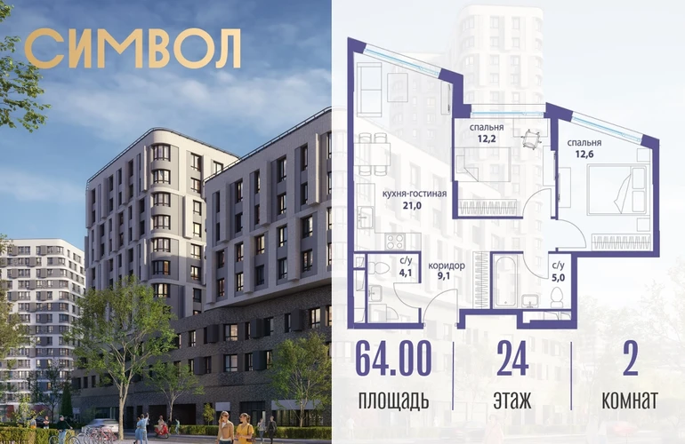 Продается 2-комнатная квартира от застройщика: общая площадь 64.00 м², жилая 24.80 м², кухня 21.00 м², 24-й этаж, жилой квартал «Вдохновение», корпус 28 (секция 1). Срок сдачи: 3 квартал 2025 года. Действует большой выбор скидок и ипотечных программ: вы можете выбрать те, что подходят именно вам. Акции и рассрочка: • Видовые квартиры. Старт продаж! • Беспроцентная рассрочка! Позвоните сейчас и забронируйте квартиру! Квартал бизнес-класса СИМВОЛ — это городское пространство нового поколения в историческом районе Лефортово, на границе ЦАО, в 2 км от Садового кольца. Бионическая архитектура СИМВОЛА превратила Лефортово в суперсовременное и модное пространство. Из окон, с балконов и террас просторных квартир СИМВОЛА открываются отличные виды на город и новый парк «Зеленая река», «протекающий» через все кварталы комплекса на 2 км. В квартале уже есть все, что нужно для комфортной жизни: кафе и рестораны, супермаркеты и магазины, медицинские и физкультурно-оздоровительные центры, салоны красоты и барбершопы, аптеки и оптики, химчистки, пункты доставки и другие сервисы — всего более 90 действующих объектов внутриквартальной инфраструктуры. Для юных жителей СИМВОЛА открыты детский сад и инженерный лицей при МГТУ им. Баумана. Особенности квартала: • Свой парк «Зеленая Река» - 10 га зелени и развлечений на любой вкус! • Уникальная для Москвы архитектура - Проект создан архитектурной мастерской ATRIUM по дизайн-коду британских бюро LDA Design и UHA London. • Богатая инфраструктура с детскими садами и лицеем им. Баумана, кафе и ресторанами, супермаркетами и аптеками, зоной для фитнеса, бассейном и мед. центром. • Квартиры с панорамными окнами, террасами, ванными с окнами и каминами редких форматов. • Закрытые безопасные зелёные дворы-парки без машин!О застройщике