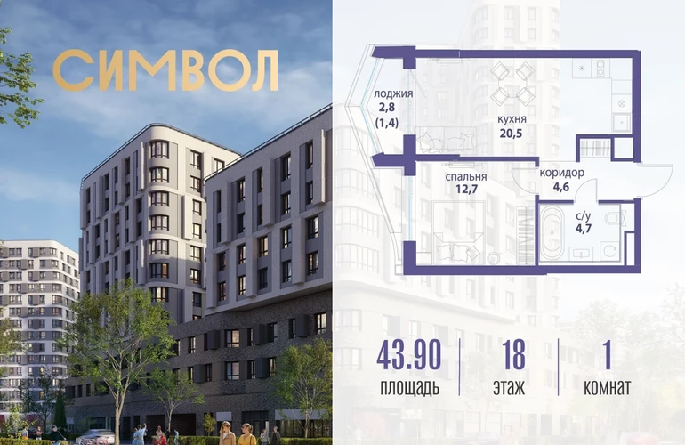 Продается 1-комнатная квартира от застройщика: общая площадь 43.90 м², жилая 12.70 м², кухня 20.50 м², 18-й этаж, жилой квартал «Вдохновение», корпус 33 (секция 2). Срок сдачи: 4 квартал 2027 года. Позвоните сейчас и забронируйте квартиру! Квартал бизнес-класса СИМВОЛ — это городское пространство нового поколения в историческом районе Лефортово, на границе ЦАО, в 2 км от Садового кольца. Бионическая архитектура СИМВОЛА превратила Лефортово в суперсовременное и модное пространство. Из окон, с балконов и террас просторных квартир СИМВОЛА открываются отличные виды на город и новый парк «Зеленая река», «протекающий» через все кварталы комплекса на 2 км. В квартале уже есть все, что нужно для комфортной жизни: кафе и рестораны, супермаркеты и магазины, медицинские и физкультурно-оздоровительные центры, салоны красоты и барбершопы, аптеки и оптики, химчистки, пункты доставки и другие сервисы — всего более 90 действующих объектов внутриквартальной инфраструктуры. Для юных жителей СИМВОЛА открыты детский сад и инженерный лицей при МГТУ им. Баумана. Особенности квартала: • Свой парк «Зеленая Река» - 10 га зелени и развлечений на любой вкус! • Уникальная для Москвы архитектура - Проект создан архитектурной мастерской ATRIUM по дизайн-коду британских бюро LDA Design и UHA London. • Богатая инфраструктура с детскими садами и лицеем им. Баумана, кафе и ресторанами, супермаркетами и аптеками, зоной для фитнеса, бассейном и мед. центром. • Квартиры с панорамными окнами, террасами, ванными с окнами и каминами редких форматов. • Закрытые безопасные зелёные дворы-парки без машин!О застройщике