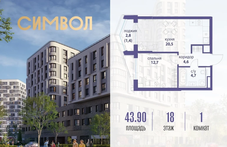 Продается 1-комнатная квартира от застройщика: общая площадь 43.90 м², жилая 12.70 м², кухня 20.50 м², 18-й этаж, жилой квартал «Вдохновение», корпус 33 (секция 2). Срок сдачи: 4 квартал 2027 года. Позвоните сейчас и забронируйте квартиру! Квартал бизнес-класса СИМВОЛ — это городское пространство нового поколения в историческом районе Лефортово, на границе ЦАО, в 2 км от Садового кольца. Бионическая архитектура СИМВОЛА превратила Лефортово в суперсовременное и модное пространство. Из окон, с балконов и террас просторных квартир СИМВОЛА открываются отличные виды на город и новый парк «Зеленая река», «протекающий» через все кварталы комплекса на 2 км. В квартале уже есть все, что нужно для комфортной жизни: кафе и рестораны, супермаркеты и магазины, медицинские и физкультурно-оздоровительные центры, салоны красоты и барбершопы, аптеки и оптики, химчистки, пункты доставки и другие сервисы — всего более 90 действующих объектов внутриквартальной инфраструктуры. Для юных жителей СИМВОЛА открыты детский сад и инженерный лицей при МГТУ им. Баумана. Особенности квартала: • Свой парк «Зеленая Река» - 10 га зелени и развлечений на любой вкус! • Уникальная для Москвы архитектура - Проект создан архитектурной мастерской ATRIUM по дизайн-коду британских бюро LDA Design и UHA London. • Богатая инфраструктура с детскими садами и лицеем им. Баумана, кафе и ресторанами, супермаркетами и аптеками, зоной для фитнеса, бассейном и мед. центром. • Квартиры с панорамными окнами, террасами, ванными с окнами и каминами редких форматов. • Закрытые безопасные зелёные дворы-парки без машин!