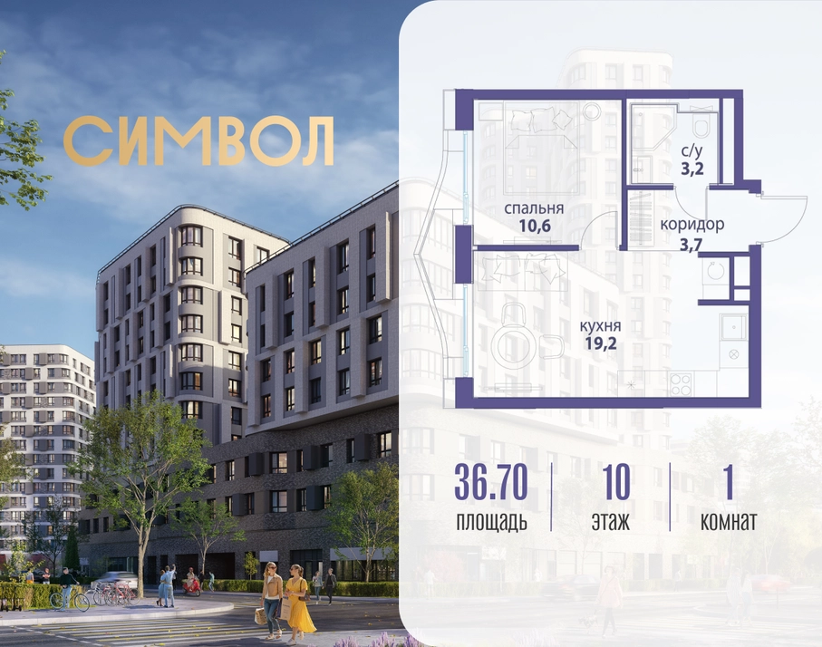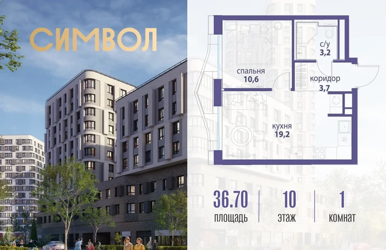 Продается 1-комнатная квартира от застройщика: общая площадь 36.70 м², жилая 10.60 м², кухня 19.20 м², 10-й этаж, жилой квартал «Вдохновение», корпус 33 (секция 3). Срок сдачи: 4 квартал 2027 года. Позвоните сейчас и забронируйте квартиру! Квартал бизнес-класса СИМВОЛ — это городское пространство нового поколения в историческом районе Лефортово, на границе ЦАО, в 2 км от Садового кольца. Бионическая архитектура СИМВОЛА превратила Лефортово в суперсовременное и модное пространство. Из окон, с балконов и террас просторных квартир СИМВОЛА открываются отличные виды на город и новый парк «Зеленая река», «протекающий» через все кварталы комплекса на 2 км. В квартале уже есть все, что нужно для комфортной жизни: кафе и рестораны, супермаркеты и магазины, медицинские и физкультурно-оздоровительные центры, салоны красоты и барбершопы, аптеки и оптики, химчистки, пункты доставки и другие сервисы — всего более 90 действующих объектов внутриквартальной инфраструктуры. Для юных жителей СИМВОЛА открыты детский сад и инженерный лицей при МГТУ им. Баумана. Особенности квартала: • Свой парк «Зеленая Река» - 10 га зелени и развлечений на любой вкус! • Уникальная для Москвы архитектура - Проект создан архитектурной мастерской ATRIUM по дизайн-коду британских бюро LDA Design и UHA London. • Богатая инфраструктура с детскими садами и лицеем им. Баумана, кафе и ресторанами, супермаркетами и аптеками, зоной для фитнеса, бассейном и мед. центром. • Квартиры с панорамными окнами, террасами, ванными с окнами и каминами редких форматов. • Закрытые безопасные зелёные дворы-парки без машин!О застройщике