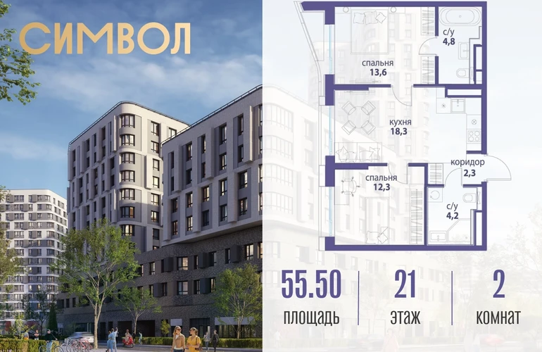 Продается 2-комнатная квартира от застройщика: общая площадь 55.50 м², жилая 25.90 м², кухня 18.30 м², 21-й этаж, жилой квартал «Вдохновение», корпус 33 (секция 3). Срок сдачи: 4 квартал 2027 года. Позвоните сейчас и забронируйте квартиру! Квартал бизнес-класса СИМВОЛ — это городское пространство нового поколения в историческом районе Лефортово, на границе ЦАО, в 2 км от Садового кольца. Бионическая архитектура СИМВОЛА превратила Лефортово в суперсовременное и модное пространство. Из окон, с балконов и террас просторных квартир СИМВОЛА открываются отличные виды на город и новый парк «Зеленая река», «протекающий» через все кварталы комплекса на 2 км. В квартале уже есть все, что нужно для комфортной жизни: кафе и рестораны, супермаркеты и магазины, медицинские и физкультурно-оздоровительные центры, салоны красоты и барбершопы, аптеки и оптики, химчистки, пункты доставки и другие сервисы — всего более 90 действующих объектов внутриквартальной инфраструктуры. Для юных жителей СИМВОЛА открыты детский сад и инженерный лицей при МГТУ им. Баумана. Особенности квартала: • Свой парк «Зеленая Река» - 10 га зелени и развлечений на любой вкус! • Уникальная для Москвы архитектура - Проект создан архитектурной мастерской ATRIUM по дизайн-коду британских бюро LDA Design и UHA London. • Богатая инфраструктура с детскими садами и лицеем им. Баумана, кафе и ресторанами, супермаркетами и аптеками, зоной для фитнеса, бассейном и мед. центром. • Квартиры с панорамными окнами, террасами, ванными с окнами и каминами редких форматов. • Закрытые безопасные зелёные дворы-парки без машин!О застройщике