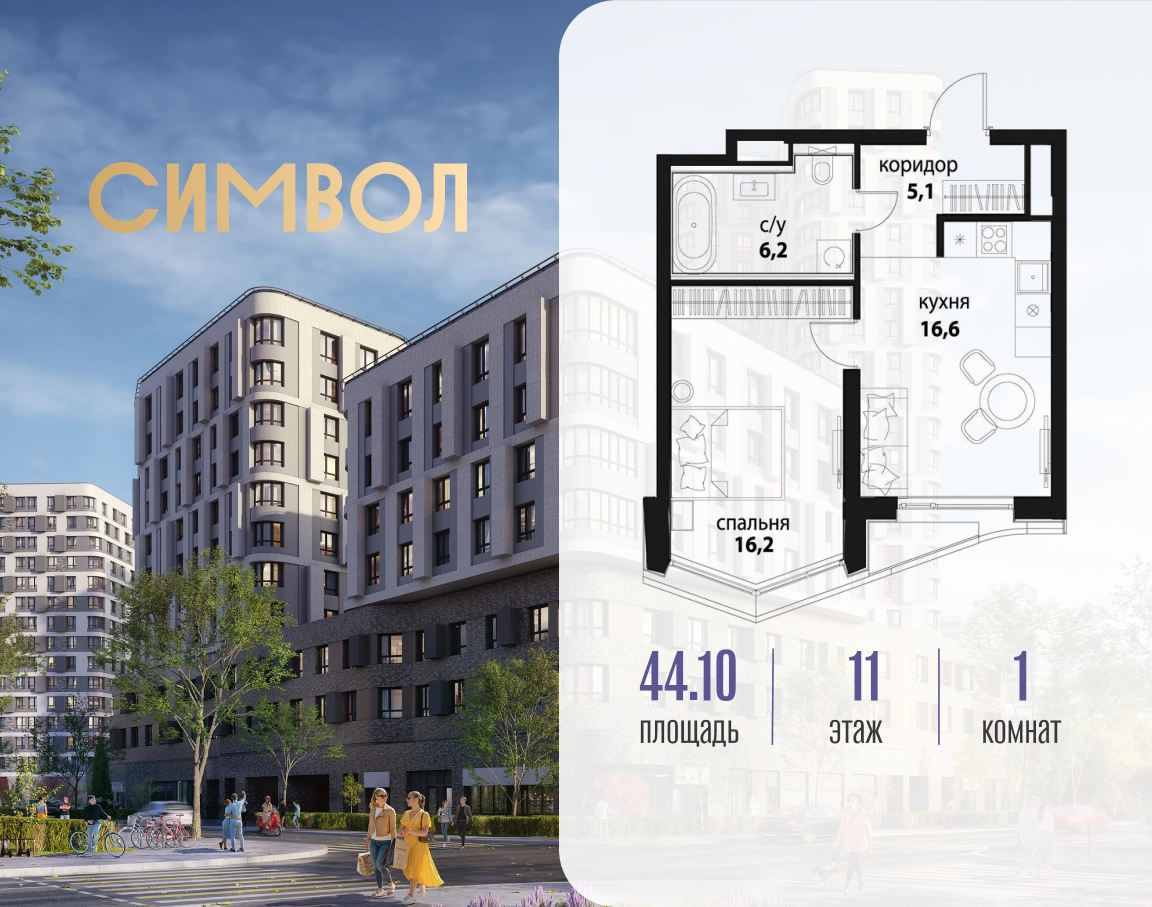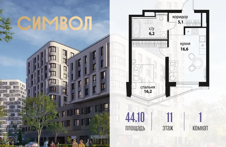 Продается 1-комнатная квартира от застройщика: общая площадь 44.10 м², жилая 16.20 м², кухня 16.60 м², 11-й этаж, жилой квартал «Вдохновение», корпус 33 (секция 1). Срок сдачи: 4 квартал 2027 года. Позвоните сейчас и забронируйте квартиру! Квартал бизнес-класса СИМВОЛ — это городское пространство нового поколения в историческом районе Лефортово, на границе ЦАО, в 2 км от Садового кольца. Бионическая архитектура СИМВОЛА превратила Лефортово в суперсовременное и модное пространство. Из окон, с балконов и террас просторных квартир СИМВОЛА открываются отличные виды на город и новый парк «Зеленая река», «протекающий» через все кварталы комплекса на 2 км. В квартале уже есть все, что нужно для комфортной жизни: кафе и рестораны, супермаркеты и магазины, медицинские и физкультурно-оздоровительные центры, салоны красоты и барбершопы, аптеки и оптики, химчистки, пункты доставки и другие сервисы — всего более 90 действующих объектов внутриквартальной инфраструктуры. Для юных жителей СИМВОЛА открыты детский сад и инженерный лицей при МГТУ им. Баумана. Особенности квартала: • Свой парк «Зеленая Река» - 10 га зелени и развлечений на любой вкус! • Уникальная для Москвы архитектура - Проект создан архитектурной мастерской ATRIUM по дизайн-коду британских бюро LDA Design и UHA London. • Богатая инфраструктура с детскими садами и лицеем им. Баумана, кафе и ресторанами, супермаркетами и аптеками, зоной для фитнеса, бассейном и мед. центром. • Квартиры с панорамными окнами, террасами, ванными с окнами и каминами редких форматов. • Закрытые безопасные зелёные дворы-парки без машин!О застройщике