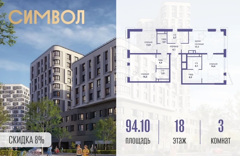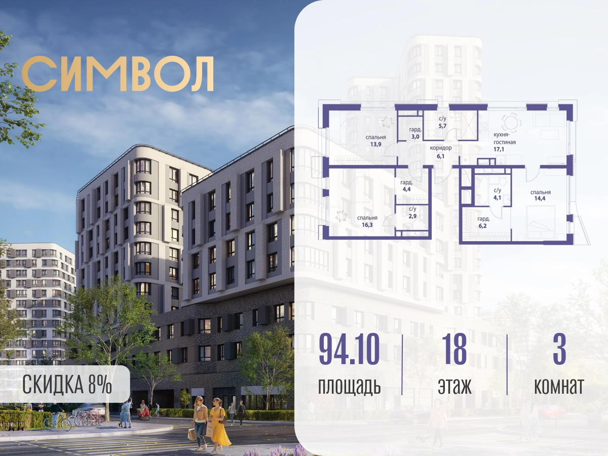Продается 3-комнатная квартира от застройщика: общая площадь 94.10 м², жилая 44.60 м², кухня 18.70 м², 18-й этаж, жилой квартал «Вдохновение», корпус 32 (секция 1). Срок сдачи: 4 квартал 2027 года. Позвоните сейчас и забронируйте квартиру! Квартал бизнес-класса СИМВОЛ — это городское пространство нового поколения в историческом районе Лефортово, на границе ЦАО, в 2 км от Садового кольца. Бионическая архитектура СИМВОЛА превратила Лефортово в суперсовременное и модное пространство. Из окон, с балконов и террас просторных квартир СИМВОЛА открываются отличные виды на город и новый парк «Зеленая река», «протекающий» через все кварталы комплекса на 2 км. В квартале уже есть все, что нужно для комфортной жизни: кафе и рестораны, супермаркеты и магазины, медицинские и физкультурно-оздоровительные центры, салоны красоты и барбершопы, аптеки и оптики, химчистки, пункты доставки и другие сервисы — всего более 90 действующих объектов внутриквартальной инфраструктуры. Для юных жителей СИМВОЛА открыты детский сад и инженерный лицей при МГТУ им. Баумана. Особенности квартала: • Свой парк «Зеленая Река» - 10 га зелени и развлечений на любой вкус! • Уникальная для Москвы архитектура - Проект создан архитектурной мастерской ATRIUM по дизайн-коду британских бюро LDA Design и UHA London. • Богатая инфраструктура с детскими садами и лицеем им. Баумана, кафе и ресторанами, супермаркетами и аптеками, зоной для фитнеса, бассейном и мед. центром. • Квартиры с панорамными окнами, террасами, ванными с окнами и каминами редких форматов. • Закрытые безопасные зелёные дворы-парки без машин!О застройщике