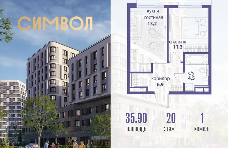 Продается 1-комнатная квартира от застройщика: общая площадь 35.90 м², жилая 11.30 м², кухня 13.20 м², 20-й этаж, жилой квартал «Вдохновение», корпус 33 (секция 2). Срок сдачи: 4 квартал 2027 года. Позвоните сейчас и забронируйте квартиру! Квартал бизнес-класса СИМВОЛ — это городское пространство нового поколения в историческом районе Лефортово, на границе ЦАО, в 2 км от Садового кольца. Бионическая архитектура СИМВОЛА превратила Лефортово в суперсовременное и модное пространство. Из окон, с балконов и террас просторных квартир СИМВОЛА открываются отличные виды на город и новый парк «Зеленая река», «протекающий» через все кварталы комплекса на 2 км. В квартале уже есть все, что нужно для комфортной жизни: кафе и рестораны, супермаркеты и магазины, медицинские и физкультурно-оздоровительные центры, салоны красоты и барбершопы, аптеки и оптики, химчистки, пункты доставки и другие сервисы — всего более 90 действующих объектов внутриквартальной инфраструктуры. Для юных жителей СИМВОЛА открыты детский сад и инженерный лицей при МГТУ им. Баумана. Особенности квартала: • Свой парк «Зеленая Река» - 10 га зелени и развлечений на любой вкус! • Уникальная для Москвы архитектура - Проект создан архитектурной мастерской ATRIUM по дизайн-коду британских бюро LDA Design и UHA London. • Богатая инфраструктура с детскими садами и лицеем им. Баумана, кафе и ресторанами, супермаркетами и аптеками, зоной для фитнеса, бассейном и мед. центром. • Квартиры с панорамными окнами, террасами, ванными с окнами и каминами редких форматов. • Закрытые безопасные зелёные дворы-парки без машин!