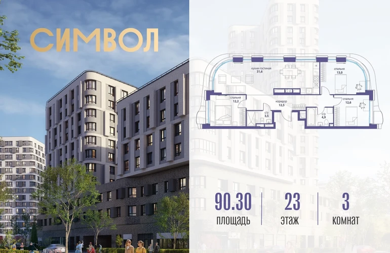 Продается 3-комнатная квартира от застройщика: общая площадь 90.30 м², жилая 37.80 м², кухня 31.60 м², 23-й этаж, жилой квартал «Вдохновение», корпус 34 (секция 1). Срок сдачи: 4 квартал 2027 года. Позвоните сейчас и забронируйте квартиру! Квартал бизнес-класса СИМВОЛ — это городское пространство нового поколения в историческом районе Лефортово, на границе ЦАО, в 2 км от Садового кольца. Бионическая архитектура СИМВОЛА превратила Лефортово в суперсовременное и модное пространство. Из окон, с балконов и террас просторных квартир СИМВОЛА открываются отличные виды на город и новый парк «Зеленая река», «протекающий» через все кварталы комплекса на 2 км. В квартале уже есть все, что нужно для комфортной жизни: кафе и рестораны, супермаркеты и магазины, медицинские и физкультурно-оздоровительные центры, салоны красоты и барбершопы, аптеки и оптики, химчистки, пункты доставки и другие сервисы — всего более 90 действующих объектов внутриквартальной инфраструктуры. Для юных жителей СИМВОЛА открыты детский сад и инженерный лицей при МГТУ им. Баумана. Особенности квартала: • Свой парк «Зеленая Река» - 10 га зелени и развлечений на любой вкус! • Уникальная для Москвы архитектура - Проект создан архитектурной мастерской ATRIUM по дизайн-коду британских бюро LDA Design и UHA London. • Богатая инфраструктура с детскими садами и лицеем им. Баумана, кафе и ресторанами, супермаркетами и аптеками, зоной для фитнеса, бассейном и мед. центром. • Квартиры с панорамными окнами, террасами, ванными с окнами и каминами редких форматов. • Закрытые безопасные зелёные дворы-парки без машин!О застройщике