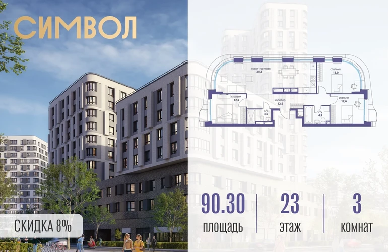 Продается 3-комнатная квартира от застройщика: общая площадь 90.30 м², жилая 37.80 м², кухня 31.60 м², 23-й этаж, жилой квартал «Вдохновение», корпус 34 (секция 1). Срок сдачи: 4 квартал 2027 года. Позвоните сейчас и забронируйте квартиру! Квартал бизнес-класса СИМВОЛ — это городское пространство нового поколения в историческом районе Лефортово, на границе ЦАО, в 2 км от Садового кольца. Бионическая архитектура СИМВОЛА превратила Лефортово в суперсовременное и модное пространство. Из окон, с балконов и террас просторных квартир СИМВОЛА открываются отличные виды на город и новый парк «Зеленая река», «протекающий» через все кварталы комплекса на 2 км. В квартале уже есть все, что нужно для комфортной жизни: кафе и рестораны, супермаркеты и магазины, медицинские и физкультурно-оздоровительные центры, салоны красоты и барбершопы, аптеки и оптики, химчистки, пункты доставки и другие сервисы — всего более 90 действующих объектов внутриквартальной инфраструктуры. Для юных жителей СИМВОЛА открыты детский сад и инженерный лицей при МГТУ им. Баумана. Особенности квартала: • Свой парк «Зеленая Река» - 10 га зелени и развлечений на любой вкус! • Уникальная для Москвы архитектура - Проект создан архитектурной мастерской ATRIUM по дизайн-коду британских бюро LDA Design и UHA London. • Богатая инфраструктура с детскими садами и лицеем им. Баумана, кафе и ресторанами, супермаркетами и аптеками, зоной для фитнеса, бассейном и мед. центром. • Квартиры с панорамными окнами, террасами, ванными с окнами и каминами редких форматов. • Закрытые безопасные зелёные дворы-парки без машин!О застройщике