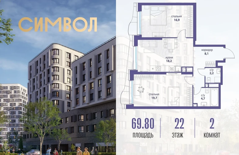Продается 2-комнатная квартира от застройщика: общая площадь 69.80 м², жилая 36.60 м², кухня 18.20 м², 22-й этаж, жилой квартал «Вдохновение», корпус 34 (секция 1). Срок сдачи: 4 квартал 2027 года. Позвоните сейчас и забронируйте квартиру! Квартал бизнес-класса СИМВОЛ — это городское пространство нового поколения в историческом районе Лефортово, на границе ЦАО, в 2 км от Садового кольца. Бионическая архитектура СИМВОЛА превратила Лефортово в суперсовременное и модное пространство. Из окон, с балконов и террас просторных квартир СИМВОЛА открываются отличные виды на город и новый парк «Зеленая река», «протекающий» через все кварталы комплекса на 2 км. В квартале уже есть все, что нужно для комфортной жизни: кафе и рестораны, супермаркеты и магазины, медицинские и физкультурно-оздоровительные центры, салоны красоты и барбершопы, аптеки и оптики, химчистки, пункты доставки и другие сервисы — всего более 90 действующих объектов внутриквартальной инфраструктуры. Для юных жителей СИМВОЛА открыты детский сад и инженерный лицей при МГТУ им. Баумана. Особенности квартала: • Свой парк «Зеленая Река» - 10 га зелени и развлечений на любой вкус! • Уникальная для Москвы архитектура - Проект создан архитектурной мастерской ATRIUM по дизайн-коду британских бюро LDA Design и UHA London. • Богатая инфраструктура с детскими садами и лицеем им. Баумана, кафе и ресторанами, супермаркетами и аптеками, зоной для фитнеса, бассейном и мед. центром. • Квартиры с панорамными окнами, террасами, ванными с окнами и каминами редких форматов. • Закрытые безопасные зелёные дворы-парки без машин!О застройщике