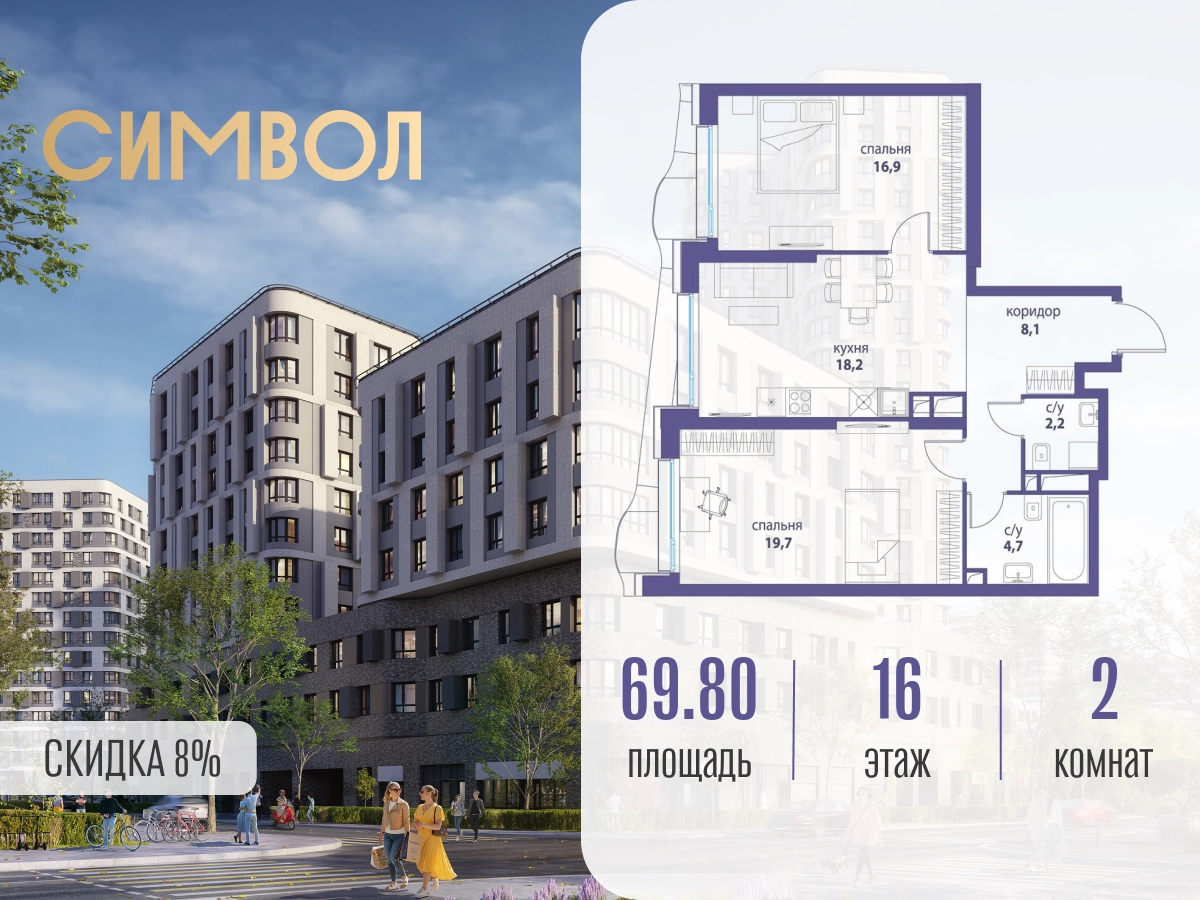 Продается 2-комнатная квартира от застройщика: общая площадь 69.80 м², жилая 36.60 м², кухня 18.20 м², 16-й этаж, жилой квартал «Вдохновение», корпус 34 (секция 1). Срок сдачи: 4 квартал 2027 года. Позвоните сейчас и забронируйте квартиру! Квартал бизнес-класса СИМВОЛ — это городское пространство нового поколения в историческом районе Лефортово, на границе ЦАО, в 2 км от Садового кольца. Бионическая архитектура СИМВОЛА превратила Лефортово в суперсовременное и модное пространство. Из окон, с балконов и террас просторных квартир СИМВОЛА открываются отличные виды на город и новый парк «Зеленая река», «протекающий» через все кварталы комплекса на 2 км. В квартале уже есть все, что нужно для комфортной жизни: кафе и рестораны, супермаркеты и магазины, медицинские и физкультурно-оздоровительные центры, салоны красоты и барбершопы, аптеки и оптики, химчистки, пункты доставки и другие сервисы — всего более 90 действующих объектов внутриквартальной инфраструктуры. Для юных жителей СИМВОЛА открыты детский сад и инженерный лицей при МГТУ им. Баумана. Особенности квартала: • Свой парк «Зеленая Река» - 10 га зелени и развлечений на любой вкус! • Уникальная для Москвы архитектура - Проект создан архитектурной мастерской ATRIUM по дизайн-коду британских бюро LDA Design и UHA London. • Богатая инфраструктура с детскими садами и лицеем им. Баумана, кафе и ресторанами, супермаркетами и аптеками, зоной для фитнеса, бассейном и мед. центром. • Квартиры с панорамными окнами, террасами, ванными с окнами и каминами редких форматов. • Закрытые безопасные зелёные дворы-парки без машин!О застройщике