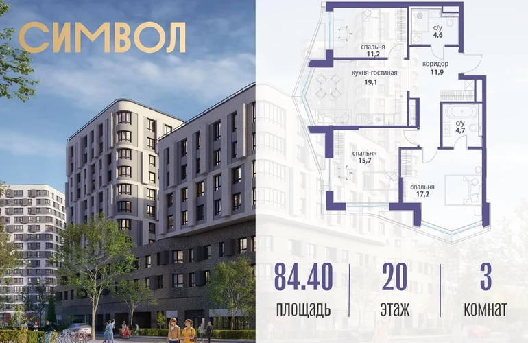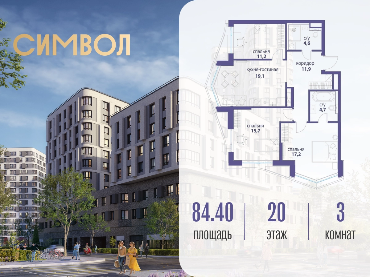 Продается 3-комнатная квартира от застройщика: общая площадь 84.40 м², жилая 44.10 м², кухня 19.10 м², 20-й этаж, жилой квартал «Вдохновение», корпус 33 (секция 2). Срок сдачи: 4 квартал 2027 года. Позвоните сейчас и забронируйте квартиру! Квартал бизнес-класса СИМВОЛ — это городское пространство нового поколения в историческом районе Лефортово, на границе ЦАО, в 2 км от Садового кольца. Бионическая архитектура СИМВОЛА превратила Лефортово в суперсовременное и модное пространство. Из окон, с балконов и террас просторных квартир СИМВОЛА открываются отличные виды на город и новый парк «Зеленая река», «протекающий» через все кварталы комплекса на 2 км. В квартале уже есть все, что нужно для комфортной жизни: кафе и рестораны, супермаркеты и магазины, медицинские и физкультурно-оздоровительные центры, салоны красоты и барбершопы, аптеки и оптики, химчистки, пункты доставки и другие сервисы — всего более 90 действующих объектов внутриквартальной инфраструктуры. Для юных жителей СИМВОЛА открыты детский сад и инженерный лицей при МГТУ им. Баумана. Особенности квартала: • Свой парк «Зеленая Река» - 10 га зелени и развлечений на любой вкус! • Уникальная для Москвы архитектура - Проект создан архитектурной мастерской ATRIUM по дизайн-коду британских бюро LDA Design и UHA London. • Богатая инфраструктура с детскими садами и лицеем им. Баумана, кафе и ресторанами, супермаркетами и аптеками, зоной для фитнеса, бассейном и мед. центром. • Квартиры с панорамными окнами, террасами, ванными с окнами и каминами редких форматов. • Закрытые безопасные зелёные дворы-парки без машин!О застройщике