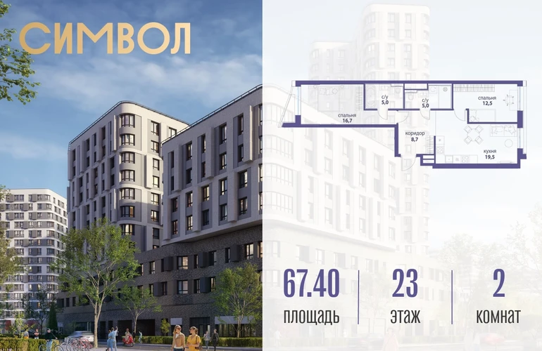 Продается 2-комнатная квартира от застройщика: общая площадь 67.40 м², жилая 29.20 м², кухня 19.50 м², 23-й этаж, жилой квартал «Вдохновение», корпус 33 (секция 2). Срок сдачи: 4 квартал 2027 года. Позвоните сейчас и забронируйте квартиру! Квартал бизнес-класса СИМВОЛ — это городское пространство нового поколения в историческом районе Лефортово, на границе ЦАО, в 2 км от Садового кольца. Бионическая архитектура СИМВОЛА превратила Лефортово в суперсовременное и модное пространство. Из окон, с балконов и террас просторных квартир СИМВОЛА открываются отличные виды на город и новый парк «Зеленая река», «протекающий» через все кварталы комплекса на 2 км. В квартале уже есть все, что нужно для комфортной жизни: кафе и рестораны, супермаркеты и магазины, медицинские и физкультурно-оздоровительные центры, салоны красоты и барбершопы, аптеки и оптики, химчистки, пункты доставки и другие сервисы — всего более 90 действующих объектов внутриквартальной инфраструктуры. Для юных жителей СИМВОЛА открыты детский сад и инженерный лицей при МГТУ им. Баумана. Особенности квартала: • Свой парк «Зеленая Река» - 10 га зелени и развлечений на любой вкус! • Уникальная для Москвы архитектура - Проект создан архитектурной мастерской ATRIUM по дизайн-коду британских бюро LDA Design и UHA London. • Богатая инфраструктура с детскими садами и лицеем им. Баумана, кафе и ресторанами, супермаркетами и аптеками, зоной для фитнеса, бассейном и мед. центром. • Квартиры с панорамными окнами, террасами, ванными с окнами и каминами редких форматов. • Закрытые безопасные зелёные дворы-парки без машин!О застройщике