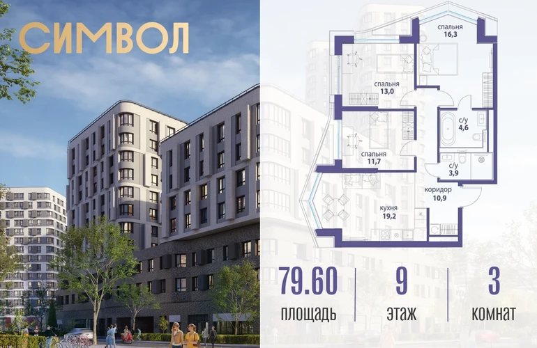 Продается 3-комнатная квартира от застройщика: общая площадь 79.60 м², жилая 41.00 м², кухня 19.20 м², 9-й этаж, жилой квартал «Вдохновение», корпус 33 (секция 3). Срок сдачи: 4 квартал 2027 года. Позвоните сейчас и забронируйте квартиру! Квартал бизнес-класса СИМВОЛ — это городское пространство нового поколения в историческом районе Лефортово, на границе ЦАО, в 2 км от Садового кольца. Бионическая архитектура СИМВОЛА превратила Лефортово в суперсовременное и модное пространство. Из окон, с балконов и террас просторных квартир СИМВОЛА открываются отличные виды на город и новый парк «Зеленая река», «протекающий» через все кварталы комплекса на 2 км. В квартале уже есть все, что нужно для комфортной жизни: кафе и рестораны, супермаркеты и магазины, медицинские и физкультурно-оздоровительные центры, салоны красоты и барбершопы, аптеки и оптики, химчистки, пункты доставки и другие сервисы — всего более 90 действующих объектов внутриквартальной инфраструктуры. Для юных жителей СИМВОЛА открыты детский сад и инженерный лицей при МГТУ им. Баумана. Особенности квартала: • Свой парк «Зеленая Река» - 10 га зелени и развлечений на любой вкус! • Уникальная для Москвы архитектура - Проект создан архитектурной мастерской ATRIUM по дизайн-коду британских бюро LDA Design и UHA London. • Богатая инфраструктура с детскими садами и лицеем им. Баумана, кафе и ресторанами, супермаркетами и аптеками, зоной для фитнеса, бассейном и мед. центром. • Квартиры с панорамными окнами, террасами, ванными с окнами и каминами редких форматов. • Закрытые безопасные зелёные дворы-парки без машин!О застройщике
