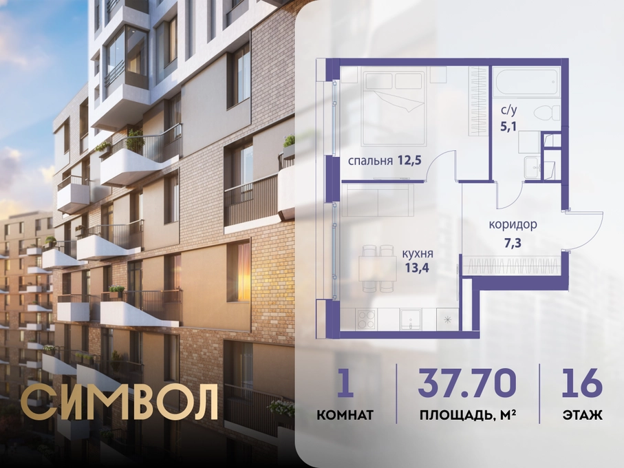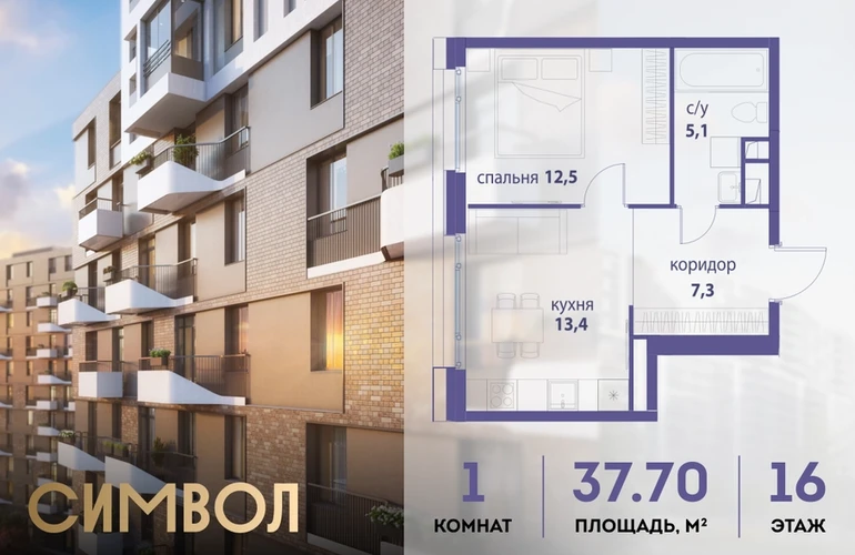 Продается 1-комнатная квартира от застройщика: общая площадь 37.70 м², жилая 12.50 м², кухня 13.40 м², 16-й этаж, жилой квартал «Вдохновение», корпус 32 (секция 1). Срок сдачи: 4 квартал 2027 года. <br> <br>Действует большой выбор скидок и ипотечных программ: вы можете выбрать те, что подходят именно вам. <br> <br>Акции и рассрочка: <br>• Видовые квартиры. Старт продаж! <br>• Беспроцентная рассрочка! <br> <br>Позвоните сейчас и забронируйте квартиру! <br> <br>Квартал бизнес-класса СИМВОЛ — это городское пространство нового поколения в историческом районе Лефортово, на границе ЦАО, в 2 км от Садового кольца. <br>Бионическая архитектура СИМВОЛА превратила Лефортово в суперсовременное и модное пространство. Из окон, с балконов и террас просторных квартир СИМВОЛА открываются отличные виды на город и новый парк «Зеленая река», «протекающий» через все кварталы комплекса на 2 км. <br>В квартале уже есть все, что нужно для комфортной жизни: кафе и рестораны, супермаркеты и магазины, медицинские и физкультурно-оздоровительные центры, салоны красоты и барбершопы, аптеки и оптики, химчистки, пункты доставки и другие сервисы — всего более 90 действующих объектов внутриквартальной инфраструктуры. <br>Для юных жителей СИМВОЛА открыты детский сад и инженерный лицей при МГТУ им. Баумана. <br> <br>Особенности квартала: <br>• Свой парк «Зеленая Река» - 10 га зелени и развлечений на любой вкус! <br>• Уникальная для Москвы архитектура - Проект создан архитектурной мастерской ATRIUM по дизайн-коду британских бюро LDA Design и UHA London. <br>• Богатая инфраструктура с детскими садами и лицеем им. Баумана, кафе и ресторанами, супермаркетами и аптеками, зоной для фитнеса, бассейном и мед. центром. <br>• Квартиры с панорамными окнами, террасами, ванными с окнами и каминами редких форматов. <br>• Закрытые безопасные зелёные дворы-парки без машин!О застройщике