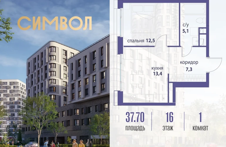 Продается 1-комнатная квартира от застройщика: общая площадь 37.70 м², жилая 12.50 м², кухня 13.40 м², 16-й этаж, жилой квартал «Вдохновение», корпус 32 (секция 1). Срок сдачи: 4 квартал 2027 года. Позвоните сейчас и забронируйте квартиру! Квартал бизнес-класса СИМВОЛ — это городское пространство нового поколения в историческом районе Лефортово, на границе ЦАО, в 2 км от Садового кольца. Бионическая архитектура СИМВОЛА превратила Лефортово в суперсовременное и модное пространство. Из окон, с балконов и террас просторных квартир СИМВОЛА открываются отличные виды на город и новый парк «Зеленая река», «протекающий» через все кварталы комплекса на 2 км. В квартале уже есть все, что нужно для комфортной жизни: кафе и рестораны, супермаркеты и магазины, медицинские и физкультурно-оздоровительные центры, салоны красоты и барбершопы, аптеки и оптики, химчистки, пункты доставки и другие сервисы — всего более 90 действующих объектов внутриквартальной инфраструктуры. Для юных жителей СИМВОЛА открыты детский сад и инженерный лицей при МГТУ им. Баумана. Особенности квартала: • Свой парк «Зеленая Река» - 10 га зелени и развлечений на любой вкус! • Уникальная для Москвы архитектура - Проект создан архитектурной мастерской ATRIUM по дизайн-коду британских бюро LDA Design и UHA London. • Богатая инфраструктура с детскими садами и лицеем им. Баумана, кафе и ресторанами, супермаркетами и аптеками, зоной для фитнеса, бассейном и мед. центром. • Квартиры с панорамными окнами, террасами, ванными с окнами и каминами редких форматов. • Закрытые безопасные зелёные дворы-парки без машин!О застройщике