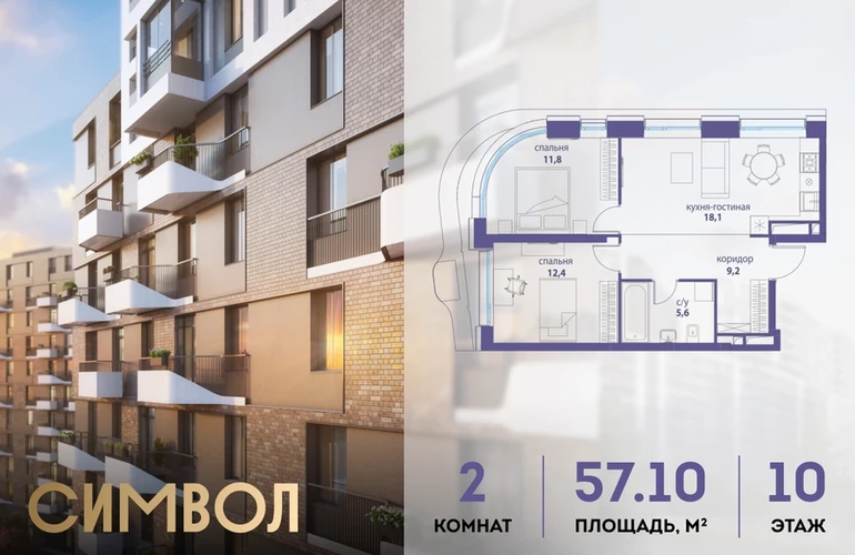 Продается 2-комнатная квартира от застройщика: общая площадь 57.10 м², жилая 24.20 м², кухня 18.10 м², 10-й этаж, жилой квартал «Вдохновение», корпус 34 (секция 1). Срок сдачи: 4 квартал 2027 года. <br> <br>Действует большой выбор скидок и ипотечных программ: вы можете выбрать те, что подходят именно вам. <br> <br>Акции и рассрочка: <br>• Видовые квартиры. Старт продаж! <br>• Беспроцентная рассрочка! <br> <br>Позвоните сейчас и забронируйте квартиру! <br> <br>Квартал бизнес-класса СИМВОЛ — это городское пространство нового поколения в историческом районе Лефортово, на границе ЦАО, в 2 км от Садового кольца. <br>Бионическая архитектура СИМВОЛА превратила Лефортово в суперсовременное и модное пространство. Из окон, с балконов и террас просторных квартир СИМВОЛА открываются отличные виды на город и новый парк «Зеленая река», «протекающий» через все кварталы комплекса на 2 км. <br>В квартале уже есть все, что нужно для комфортной жизни: кафе и рестораны, супермаркеты и магазины, медицинские и физкультурно-оздоровительные центры, салоны красоты и барбершопы, аптеки и оптики, химчистки, пункты доставки и другие сервисы — всего более 90 действующих объектов внутриквартальной инфраструктуры. <br>Для юных жителей СИМВОЛА открыты детский сад и инженерный лицей при МГТУ им. Баумана. <br> <br>Особенности квартала: <br>• Свой парк «Зеленая Река» - 10 га зелени и развлечений на любой вкус! <br>• Уникальная для Москвы архитектура - Проект создан архитектурной мастерской ATRIUM по дизайн-коду британских бюро LDA Design и UHA London. <br>• Богатая инфраструктура с детскими садами и лицеем им. Баумана, кафе и ресторанами, супермаркетами и аптеками, зоной для фитнеса, бассейном и мед. центром. <br>• Квартиры с панорамными окнами, террасами, ванными с окнами и каминами редких форматов. <br>• Закрытые безопасные зелёные дворы-парки без машин!О застройщике