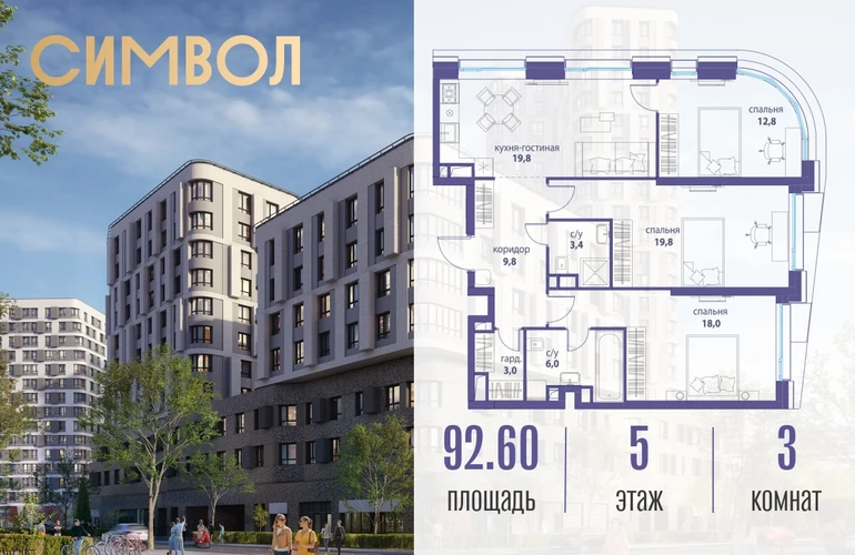 Продается 3-комнатная квартира от застройщика: общая площадь 92.60 м², жилая 50.60 м², кухня 19.80 м², 5-й этаж, жилой квартал «Вдохновение», корпус 35 (секция 1). Срок сдачи: 4 квартал 2027 года. <br> <br>Действует большой выбор скидок и ипотечных программ: вы можете выбрать те, что подходят именно вам. <br> <br>Акции и рассрочка: <br>• Видовые квартиры. Старт продаж! <br>• Беспроцентная рассрочка! <br> <br>Позвоните сейчас и забронируйте квартиру! <br> <br>Квартал бизнес-класса СИМВОЛ — это городское пространство нового поколения в историческом районе Лефортово, на границе ЦАО, в 2 км от Садового кольца. <br>Бионическая архитектура СИМВОЛА превратила Лефортово в суперсовременное и модное пространство. Из окон, с балконов и террас просторных квартир СИМВОЛА открываются отличные виды на город и новый парк «Зеленая река», «протекающий» через все кварталы комплекса на 2 км. <br>В квартале уже есть все, что нужно для комфортной жизни: кафе и рестораны, супермаркеты и магазины, медицинские и физкультурно-оздоровительные центры, салоны красоты и барбершопы, аптеки и оптики, химчистки, пункты доставки и другие сервисы — всего более 90 действующих объектов внутриквартальной инфраструктуры. <br>Для юных жителей СИМВОЛА открыты детский сад и инженерный лицей при МГТУ им. Баумана. <br> <br>Особенности квартала: <br>• Свой парк «Зеленая Река» - 10 га зелени и развлечений на любой вкус! <br>• Уникальная для Москвы архитектура - Проект создан архитектурной мастерской ATRIUM по дизайн-коду британских бюро LDA Design и UHA London. <br>• Богатая инфраструктура с детскими садами и лицеем им. Баумана, кафе и ресторанами, супермаркетами и аптеками, зоной для фитнеса, бассейном и мед. центром. <br>• Квартиры с панорамными окнами, террасами, ванными с окнами и каминами редких форматов. <br>• Закрытые безопасные зелёные дворы-парки без машин!О застройщике