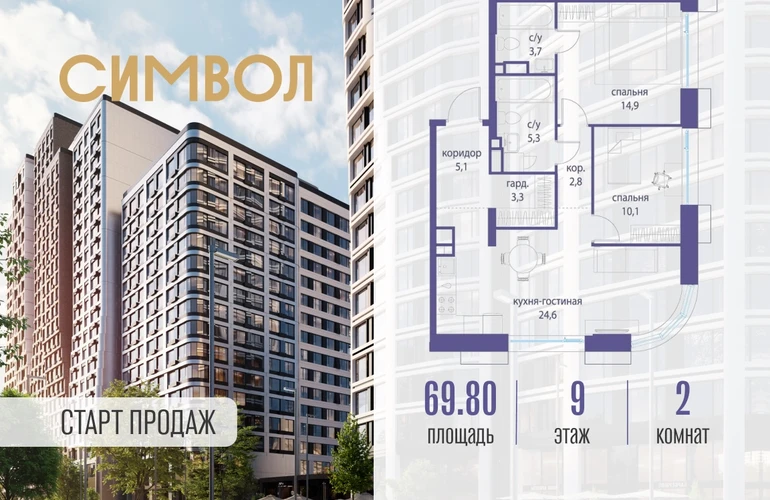 Продается 2-комнатная квартира от застройщика: общая площадь 69.80 м², жилая 25.00 м², кухня 24.60 м², 9-й этаж, жилой квартал «Гордость», корпус 36 (секция 5). Срок сдачи: 2 квартал 2029 года. Позвоните сейчас и забронируйте квартиру! Квартал бизнес-класса СИМВОЛ — это городское пространство нового поколения в историческом районе Лефортово, на границе ЦАО, в 2 км от Садового кольца. Бионическая архитектура СИМВОЛА превратила Лефортово в суперсовременное и модное пространство. Из окон, с балконов и террас просторных квартир СИМВОЛА открываются отличные виды на город и новый парк «Зеленая река», «протекающий» через все кварталы комплекса на 2 км. В квартале уже есть все, что нужно для комфортной жизни: кафе и рестораны, супермаркеты и магазины, медицинские и физкультурно-оздоровительные центры, салоны красоты и барбершопы, аптеки и оптики, химчистки, пункты доставки и другие сервисы — всего более 90 действующих объектов внутриквартальной инфраструктуры. Для юных жителей СИМВОЛА открыты детский сад и инженерный лицей при МГТУ им. Баумана. Особенности квартала: • Свой парк «Зеленая Река» - 10 га зелени и развлечений на любой вкус! • Уникальная для Москвы архитектура - Проект создан архитектурной мастерской ATRIUM по дизайн-коду британских бюро LDA Design и UHA London. • Богатая инфраструктура с детскими садами и лицеем им. Баумана, кафе и ресторанами, супермаркетами и аптеками, зоной для фитнеса, бассейном и мед. центром. • Квартиры с панорамными окнами, террасами, ванными с окнами и каминами редких форматов. • Закрытые безопасные зелёные дворы-парки без машин!О застройщике