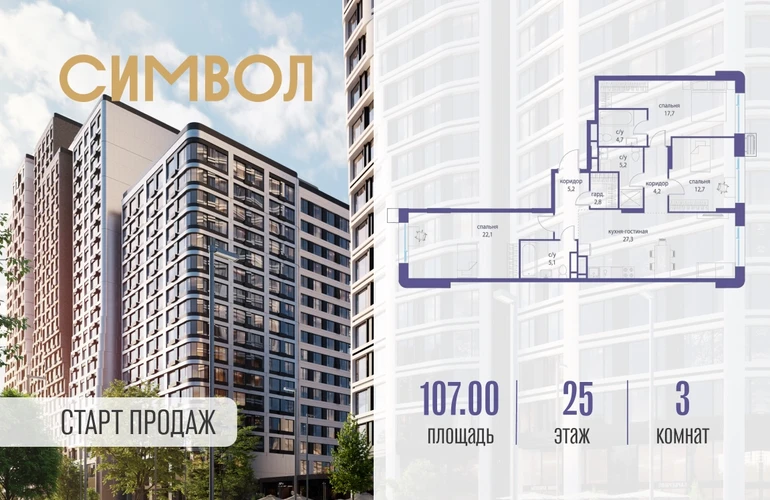 Продается 3-комнатная квартира от застройщика: общая площадь 107.00 м², жилая 52.50 м², кухня 27.30 м², 25-й этаж, жилой квартал «Гордость», корпус 36 (секция 2). Срок сдачи: 2 квартал 2029 года. Позвоните сейчас и забронируйте квартиру! Квартал бизнес-класса СИМВОЛ — это городское пространство нового поколения в историческом районе Лефортово, на границе ЦАО, в 2 км от Садового кольца. Бионическая архитектура СИМВОЛА превратила Лефортово в суперсовременное и модное пространство. Из окон, с балконов и террас просторных квартир СИМВОЛА открываются отличные виды на город и новый парк «Зеленая река», «протекающий» через все кварталы комплекса на 2 км. В квартале уже есть все, что нужно для комфортной жизни: кафе и рестораны, супермаркеты и магазины, медицинские и физкультурно-оздоровительные центры, салоны красоты и барбершопы, аптеки и оптики, химчистки, пункты доставки и другие сервисы — всего более 90 действующих объектов внутриквартальной инфраструктуры. Для юных жителей СИМВОЛА открыты детский сад и инженерный лицей при МГТУ им. Баумана. Особенности квартала: • Свой парк «Зеленая Река» - 10 га зелени и развлечений на любой вкус! • Уникальная для Москвы архитектура - Проект создан архитектурной мастерской ATRIUM по дизайн-коду британских бюро LDA Design и UHA London. • Богатая инфраструктура с детскими садами и лицеем им. Баумана, кафе и ресторанами, супермаркетами и аптеками, зоной для фитнеса, бассейном и мед. центром. • Квартиры с панорамными окнами, террасами, ванными с окнами и каминами редких форматов. • Закрытые безопасные зелёные дворы-парки без машин!О застройщике