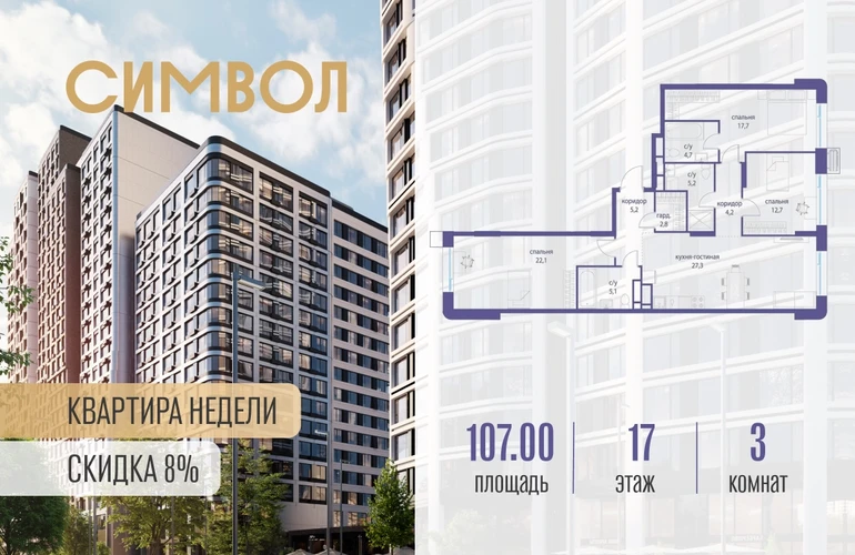 Продается 3-комнатная квартира от застройщика: общая площадь 107.00 м², жилая 52.50 м², кухня 27.30 м², 17-й этаж, жилой квартал «Гордость», корпус 36 (секция 2). Срок сдачи: 2 квартал 2029 года. Позвоните сейчас и забронируйте квартиру! Квартал бизнес-класса СИМВОЛ — это городское пространство нового поколения в историческом районе Лефортово, на границе ЦАО, в 2 км от Садового кольца. Бионическая архитектура СИМВОЛА превратила Лефортово в суперсовременное и модное пространство. Из окон, с балконов и террас просторных квартир СИМВОЛА открываются отличные виды на город и новый парк «Зеленая река», «протекающий» через все кварталы комплекса на 2 км. В квартале уже есть все, что нужно для комфортной жизни: кафе и рестораны, супермаркеты и магазины, медицинские и физкультурно-оздоровительные центры, салоны красоты и барбершопы, аптеки и оптики, химчистки, пункты доставки и другие сервисы — всего более 90 действующих объектов внутриквартальной инфраструктуры. Для юных жителей СИМВОЛА открыты детский сад и инженерный лицей при МГТУ им. Баумана. Особенности квартала: • Свой парк «Зеленая Река» - 10 га зелени и развлечений на любой вкус! • Уникальная для Москвы архитектура - Проект создан архитектурной мастерской ATRIUM по дизайн-коду британских бюро LDA Design и UHA London. • Богатая инфраструктура с детскими садами и лицеем им. Баумана, кафе и ресторанами, супермаркетами и аптеками, зоной для фитнеса, бассейном и мед. центром. • Квартиры с панорамными окнами, террасами, ванными с окнами и каминами редких форматов. • Закрытые безопасные зелёные дворы-парки без машин!О застройщике