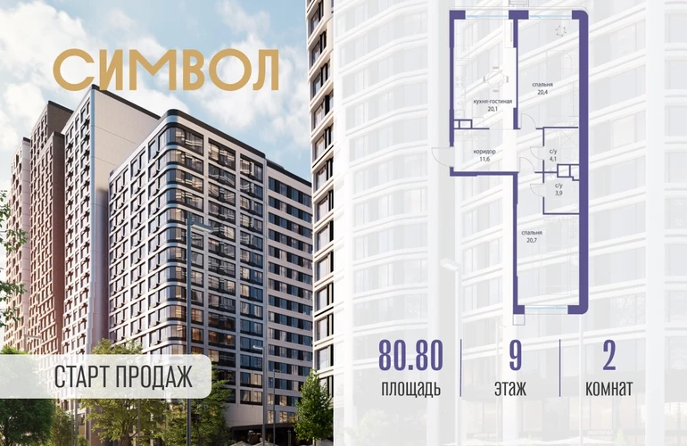 Продается 2-комнатная квартира от застройщика: общая площадь 80.80 м², жилая 41.10 м², кухня 20.10 м², 9-й этаж, жилой квартал «Гордость», корпус 36 (секция 4). Срок сдачи: 2 квартал 2029 года. Позвоните сейчас и забронируйте квартиру! Квартал бизнес-класса СИМВОЛ — это городское пространство нового поколения в историческом районе Лефортово, на границе ЦАО, в 2 км от Садового кольца. Бионическая архитектура СИМВОЛА превратила Лефортово в суперсовременное и модное пространство. Из окон, с балконов и террас просторных квартир СИМВОЛА открываются отличные виды на город и новый парк «Зеленая река», «протекающий» через все кварталы комплекса на 2 км. В квартале уже есть все, что нужно для комфортной жизни: кафе и рестораны, супермаркеты и магазины, медицинские и физкультурно-оздоровительные центры, салоны красоты и барбершопы, аптеки и оптики, химчистки, пункты доставки и другие сервисы — всего более 90 действующих объектов внутриквартальной инфраструктуры. Для юных жителей СИМВОЛА открыты детский сад и инженерный лицей при МГТУ им. Баумана. Особенности квартала: • Свой парк «Зеленая Река» - 10 га зелени и развлечений на любой вкус! • Уникальная для Москвы архитектура - Проект создан архитектурной мастерской ATRIUM по дизайн-коду британских бюро LDA Design и UHA London. • Богатая инфраструктура с детскими садами и лицеем им. Баумана, кафе и ресторанами, супермаркетами и аптеками, зоной для фитнеса, бассейном и мед. центром. • Квартиры с панорамными окнами, террасами, ванными с окнами и каминами редких форматов. • Закрытые безопасные зелёные дворы-парки без машин!О застройщике