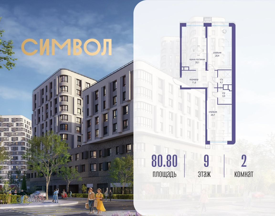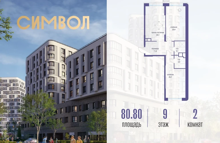 Продается 2-комнатная квартира от застройщика: общая площадь 80.80 м², жилая 41.10 м², кухня 20.10 м², 9-й этаж, жилой квартал «Гордость», корпус 36 (секция 4). Срок сдачи: 2 квартал 2029 года. Позвоните сейчас и забронируйте квартиру! Квартал бизнес-класса СИМВОЛ — это городское пространство нового поколения в историческом районе Лефортово, на границе ЦАО, в 2 км от Садового кольца. Бионическая архитектура СИМВОЛА превратила Лефортово в суперсовременное и модное пространство. Из окон, с балконов и террас просторных квартир СИМВОЛА открываются отличные виды на город и новый парк «Зеленая река», «протекающий» через все кварталы комплекса на 2 км. В квартале уже есть все, что нужно для комфортной жизни: кафе и рестораны, супермаркеты и магазины, медицинские и физкультурно-оздоровительные центры, салоны красоты и барбершопы, аптеки и оптики, химчистки, пункты доставки и другие сервисы — всего более 90 действующих объектов внутриквартальной инфраструктуры. Для юных жителей СИМВОЛА открыты детский сад и инженерный лицей при МГТУ им. Баумана. Особенности квартала: • Свой парк «Зеленая Река» - 10 га зелени и развлечений на любой вкус! • Уникальная для Москвы архитектура - Проект создан архитектурной мастерской ATRIUM по дизайн-коду британских бюро LDA Design и UHA London. • Богатая инфраструктура с детскими садами и лицеем им. Баумана, кафе и ресторанами, супермаркетами и аптеками, зоной для фитнеса, бассейном и мед. центром. • Квартиры с панорамными окнами, террасами, ванными с окнами и каминами редких форматов. • Закрытые безопасные зелёные дворы-парки без машин!О застройщике