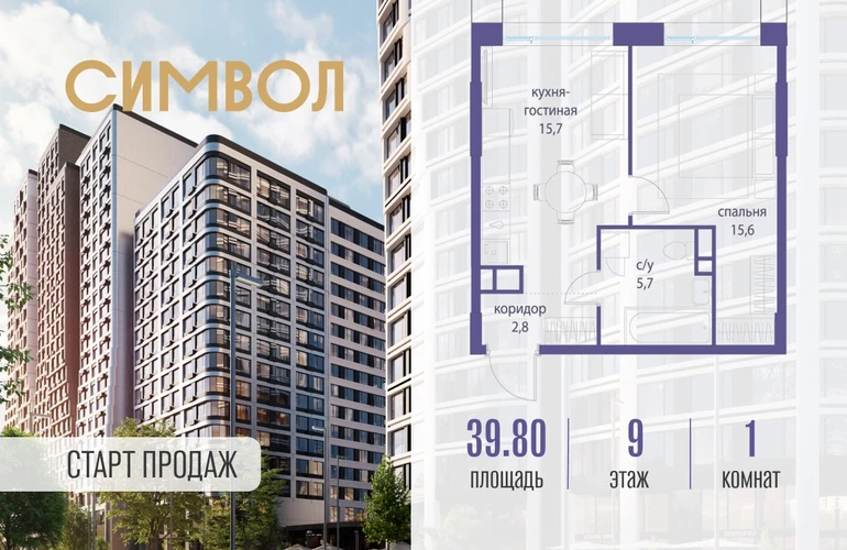 Продается 1-комнатная квартира от застройщика: общая площадь 39.80 м², жилая 15.60 м², кухня 15.70 м², 9-й этаж, жилой квартал «Гордость», корпус 36 (секция 5). Срок сдачи: 2 квартал 2029 года. Позвоните сейчас и забронируйте квартиру! Квартал бизнес-класса СИМВОЛ — это городское пространство нового поколения в историческом районе Лефортово, на границе ЦАО, в 2 км от Садового кольца. Бионическая архитектура СИМВОЛА превратила Лефортово в суперсовременное и модное пространство. Из окон, с балконов и террас просторных квартир СИМВОЛА открываются отличные виды на город и новый парк «Зеленая река», «протекающий» через все кварталы комплекса на 2 км. В квартале уже есть все, что нужно для комфортной жизни: кафе и рестораны, супермаркеты и магазины, медицинские и физкультурно-оздоровительные центры, салоны красоты и барбершопы, аптеки и оптики, химчистки, пункты доставки и другие сервисы — всего более 90 действующих объектов внутриквартальной инфраструктуры. Для юных жителей СИМВОЛА открыты детский сад и инженерный лицей при МГТУ им. Баумана. Особенности квартала: • Свой парк «Зеленая Река» - 10 га зелени и развлечений на любой вкус! • Уникальная для Москвы архитектура - Проект создан архитектурной мастерской ATRIUM по дизайн-коду британских бюро LDA Design и UHA London. • Богатая инфраструктура с детскими садами и лицеем им. Баумана, кафе и ресторанами, супермаркетами и аптеками, зоной для фитнеса, бассейном и мед. центром. • Квартиры с панорамными окнами, террасами, ванными с окнами и каминами редких форматов. • Закрытые безопасные зелёные дворы-парки без машин!О застройщике