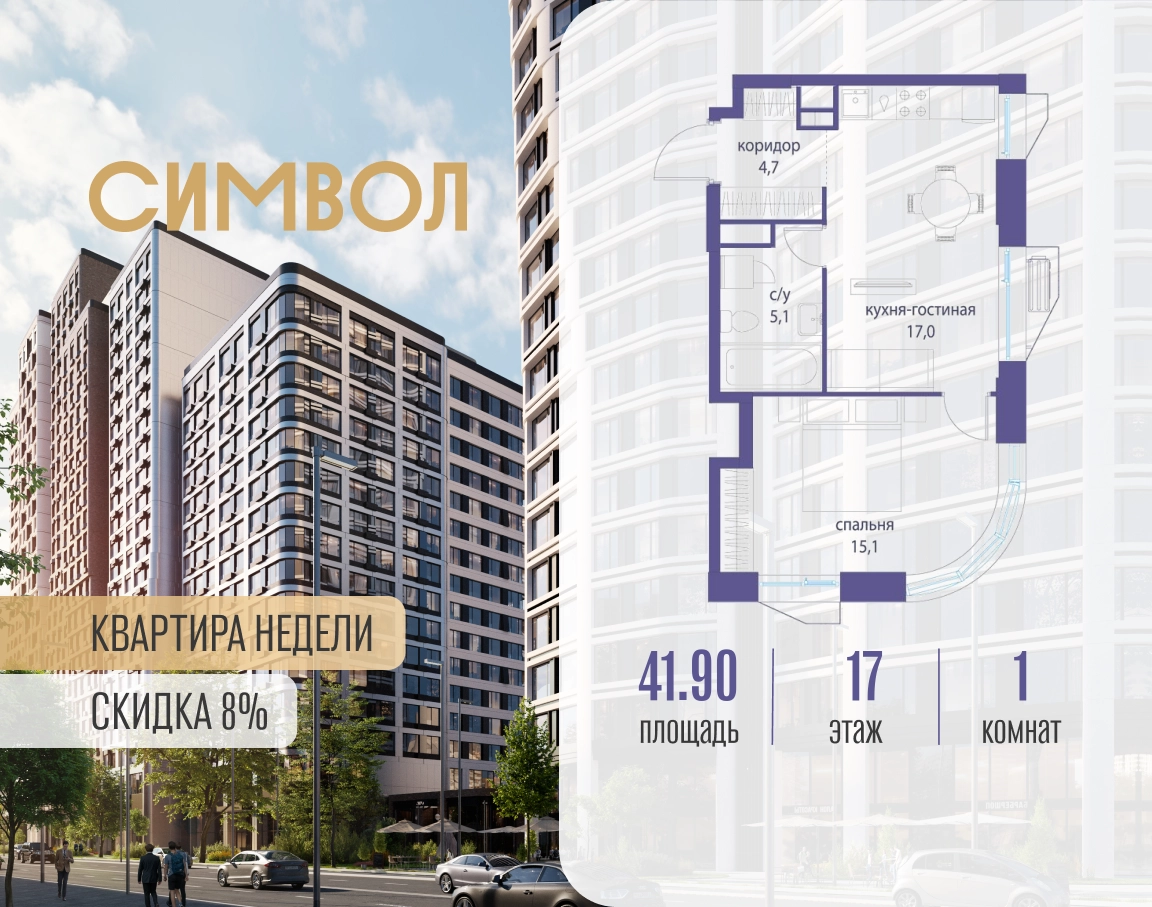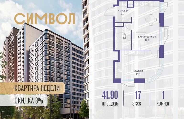 Продается 1-комнатная квартира от застройщика: общая площадь 41.90 м², жилая 15.10 м², кухня 17.00 м², 17-й этаж, жилой квартал «Гордость», корпус 36 (секция 1). Срок сдачи: 2 квартал 2029 года. Позвоните сейчас и забронируйте квартиру! Квартал бизнес-класса СИМВОЛ — это городское пространство нового поколения в историческом районе Лефортово, на границе ЦАО, в 2 км от Садового кольца. Бионическая архитектура СИМВОЛА превратила Лефортово в суперсовременное и модное пространство. Из окон, с балконов и террас просторных квартир СИМВОЛА открываются отличные виды на город и новый парк «Зеленая река», «протекающий» через все кварталы комплекса на 2 км. В квартале уже есть все, что нужно для комфортной жизни: кафе и рестораны, супермаркеты и магазины, медицинские и физкультурно-оздоровительные центры, салоны красоты и барбершопы, аптеки и оптики, химчистки, пункты доставки и другие сервисы — всего более 90 действующих объектов внутриквартальной инфраструктуры. Для юных жителей СИМВОЛА открыты детский сад и инженерный лицей при МГТУ им. Баумана. Особенности квартала: • Свой парк «Зеленая Река» - 10 га зелени и развлечений на любой вкус! • Уникальная для Москвы архитектура - Проект создан архитектурной мастерской ATRIUM по дизайн-коду британских бюро LDA Design и UHA London. • Богатая инфраструктура с детскими садами и лицеем им. Баумана, кафе и ресторанами, супермаркетами и аптеками, зоной для фитнеса, бассейном и мед. центром. • Квартиры с панорамными окнами, террасами, ванными с окнами и каминами редких форматов. • Закрытые безопасные зелёные дворы-парки без машин!О застройщике