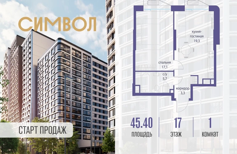 Продается 1-комнатная квартира от застройщика: общая площадь 45.40 м², жилая 17.10 м², кухня 19.30 м², 17-й этаж, жилой квартал «Гордость», корпус 36 (секция 4). Срок сдачи: 2 квартал 2029 года. Позвоните сейчас и забронируйте квартиру! Квартал бизнес-класса СИМВОЛ — это городское пространство нового поколения в историческом районе Лефортово, на границе ЦАО, в 2 км от Садового кольца. Бионическая архитектура СИМВОЛА превратила Лефортово в суперсовременное и модное пространство. Из окон, с балконов и террас просторных квартир СИМВОЛА открываются отличные виды на город и новый парк «Зеленая река», «протекающий» через все кварталы комплекса на 2 км. В квартале уже есть все, что нужно для комфортной жизни: кафе и рестораны, супермаркеты и магазины, медицинские и физкультурно-оздоровительные центры, салоны красоты и барбершопы, аптеки и оптики, химчистки, пункты доставки и другие сервисы — всего более 90 действующих объектов внутриквартальной инфраструктуры. Для юных жителей СИМВОЛА открыты детский сад и инженерный лицей при МГТУ им. Баумана. Особенности квартала: • Свой парк «Зеленая Река» - 10 га зелени и развлечений на любой вкус! • Уникальная для Москвы архитектура - Проект создан архитектурной мастерской ATRIUM по дизайн-коду британских бюро LDA Design и UHA London. • Богатая инфраструктура с детскими садами и лицеем им. Баумана, кафе и ресторанами, супермаркетами и аптеками, зоной для фитнеса, бассейном и мед. центром. • Квартиры с панорамными окнами, террасами, ванными с окнами и каминами редких форматов. • Закрытые безопасные зелёные дворы-парки без машин!О застройщике