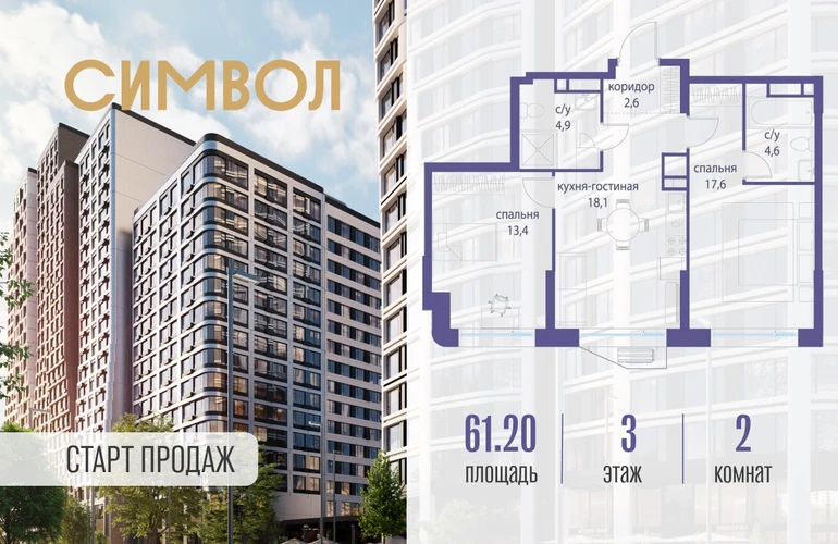 Продается 2-комнатная квартира от застройщика: общая площадь 61.20 м², жилая 31.00 м², кухня 18.10 м², 3-й этаж, жилой квартал «Гордость», корпус 36 (секция 3). Срок сдачи: 2 квартал 2029 года. Позвоните сейчас и забронируйте квартиру! Квартал бизнес-класса СИМВОЛ — это городское пространство нового поколения в историческом районе Лефортово, на границе ЦАО, в 2 км от Садового кольца. Бионическая архитектура СИМВОЛА превратила Лефортово в суперсовременное и модное пространство. Из окон, с балконов и террас просторных квартир СИМВОЛА открываются отличные виды на город и новый парк «Зеленая река», «протекающий» через все кварталы комплекса на 2 км. В квартале уже есть все, что нужно для комфортной жизни: кафе и рестораны, супермаркеты и магазины, медицинские и физкультурно-оздоровительные центры, салоны красоты и барбершопы, аптеки и оптики, химчистки, пункты доставки и другие сервисы — всего более 90 действующих объектов внутриквартальной инфраструктуры. Для юных жителей СИМВОЛА открыты детский сад и инженерный лицей при МГТУ им. Баумана. Особенности квартала: • Свой парк «Зеленая Река» - 10 га зелени и развлечений на любой вкус! • Уникальная для Москвы архитектура - Проект создан архитектурной мастерской ATRIUM по дизайн-коду британских бюро LDA Design и UHA London. • Богатая инфраструктура с детскими садами и лицеем им. Баумана, кафе и ресторанами, супермаркетами и аптеками, зоной для фитнеса, бассейном и мед. центром. • Квартиры с панорамными окнами, террасами, ванными с окнами и каминами редких форматов. • Закрытые безопасные зелёные дворы-парки без машин!О застройщике